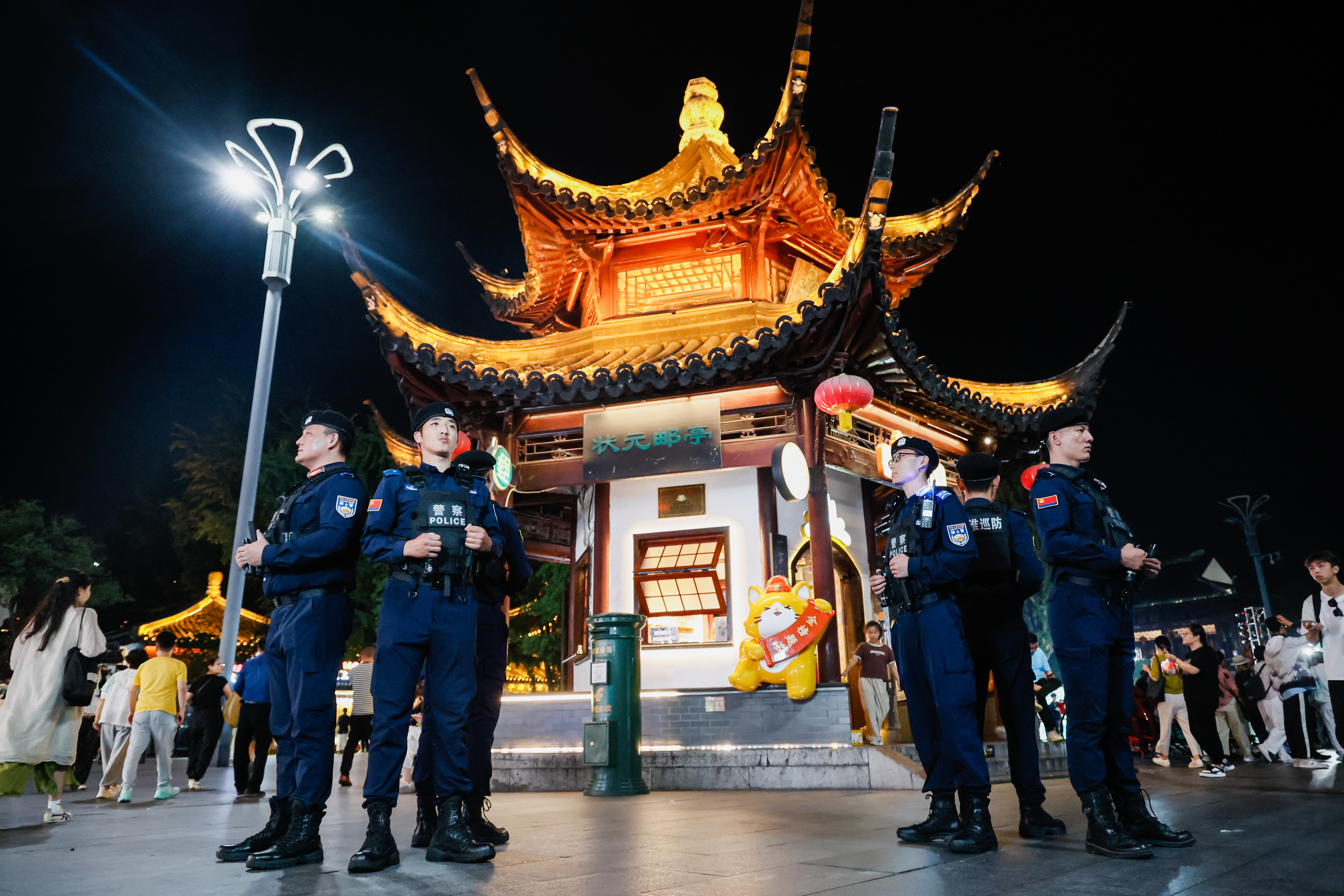 特别是在夫子庙秦淮风光带景区,南京警方将景区安保作为重中之重,建强安保指挥体系,全面增加警力部署。“我们通过加设42块指示标牌、800米栏杆水马,持续优化客流路线。利用地铁5号线夫子庙站围挡区域,设置1700平方米、可容纳5500人的回廊区域,作为大客流蓄水池和缓冲区。科学设置12组智能高台,特警、武警、民警组成最小作战单元,定点守护,稳妥应对全天最高近40万、瞬时最高7.1万的客流高峰,有力保障226.1万人次安全顺利观光游览。”南京市公安局秦淮分局局长黎海东介绍。节日期间,“白衬衫”警力和PTU突击队作为夫子庙景区的独特风景,也受到了社会各界的广泛关注和点赞好评。