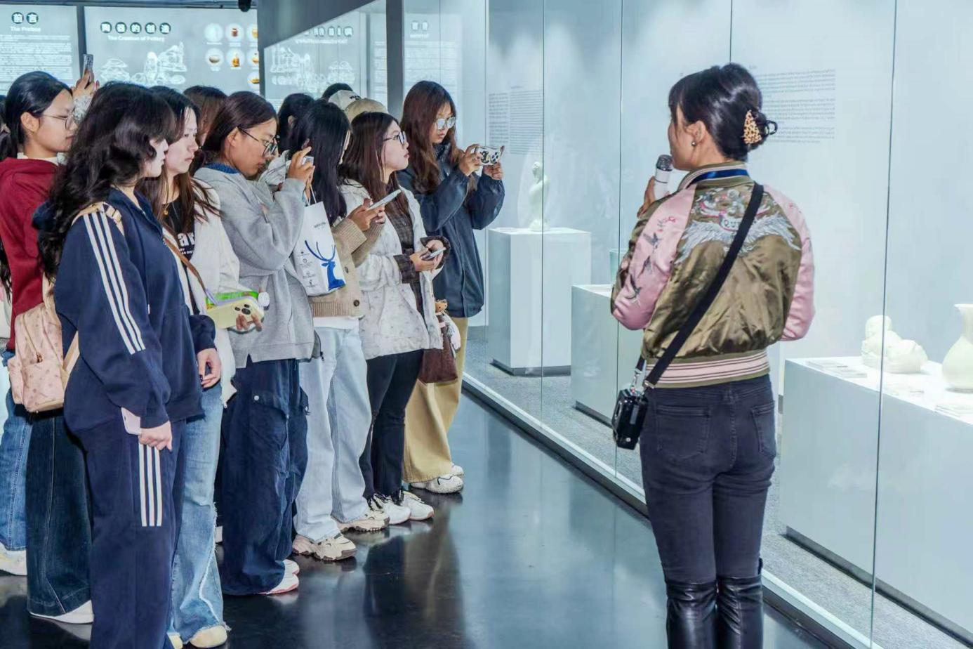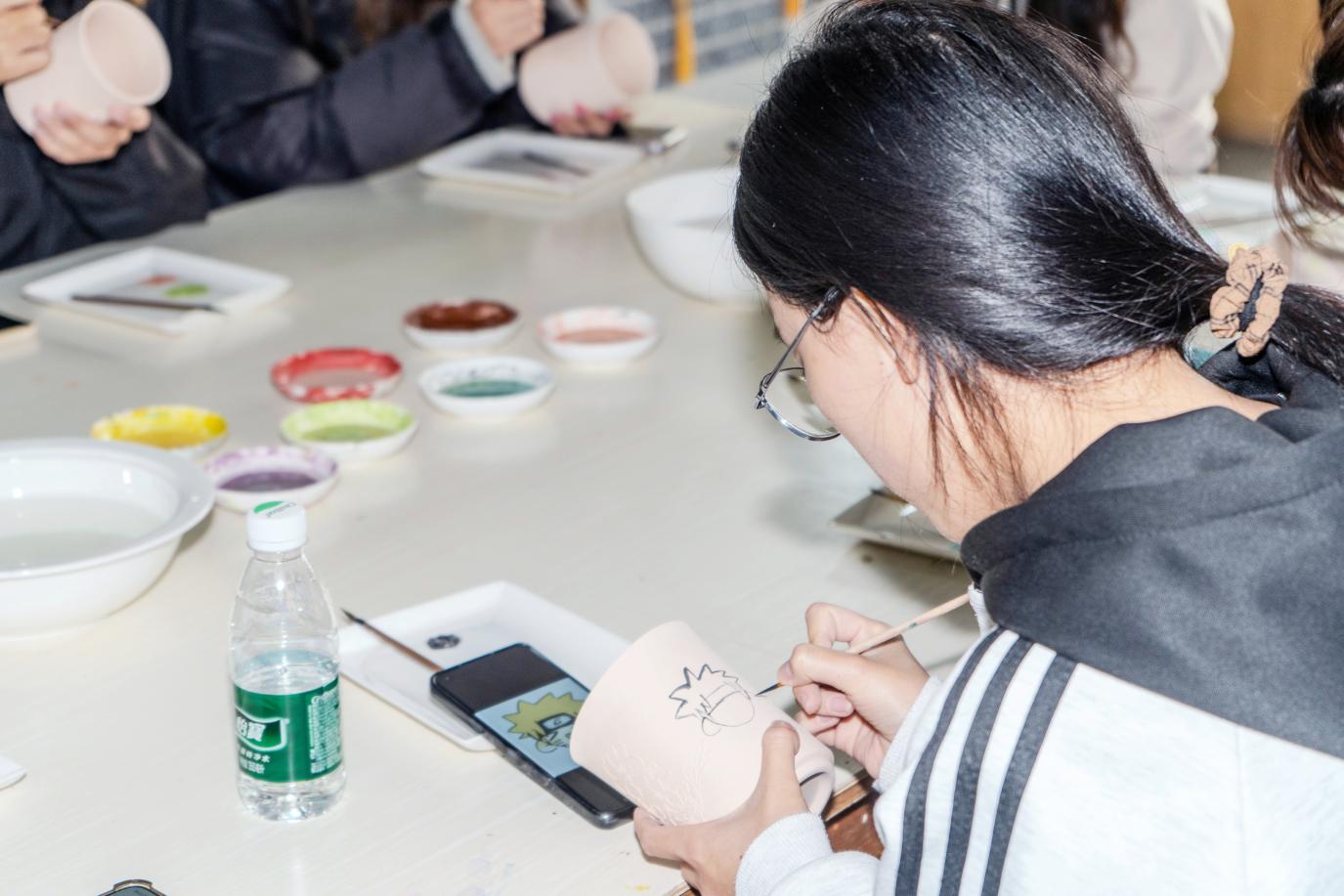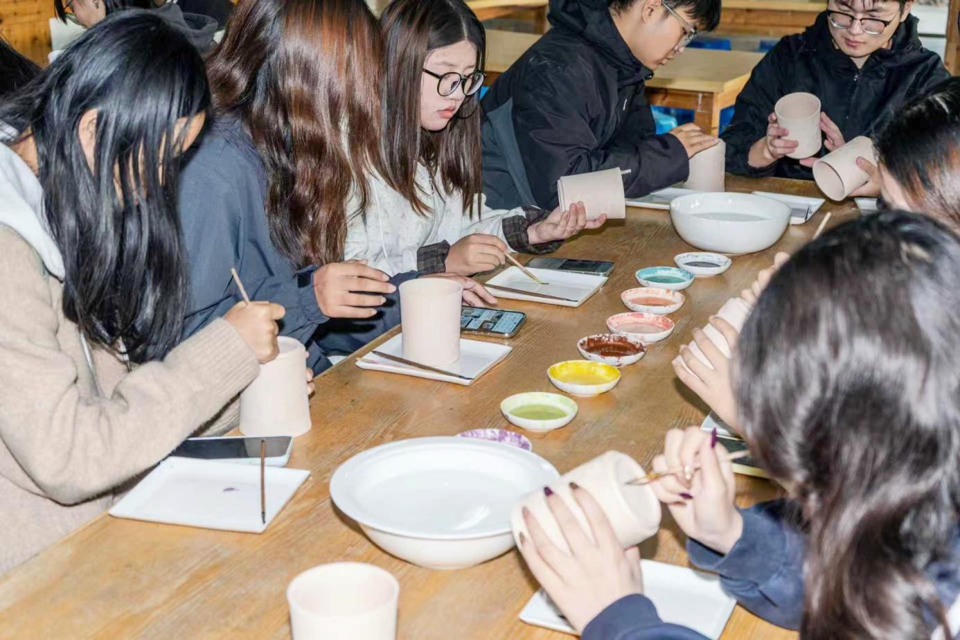文创制作体验环节将活动推向高潮。同学们在陶艺师指导下亲手体验彩绘工艺,将现代审美与传统技法结合,完成了专属创意作品。