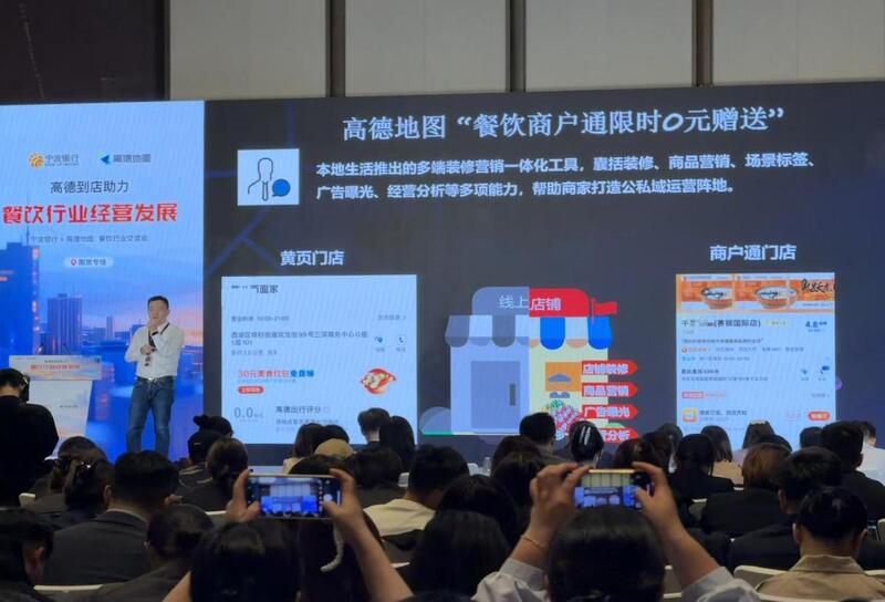 作为本次活动的联合发起方,宁波银行南京分行与高德地图分别从“数字引流”与“金融赋能”两大维度,为餐饮商家提供全链路支持。高德地图依托亿级用户基数与成熟地图生态,打破传统导航工具属性,构建“线下消费+数字引流”全新链路,通过免费开店支持、精准获客权益、专项经营补贴等实操福利,帮助餐饮商家打通从“被发现”到“被选择”的流量通道;宁波银行南京分行则立足本地实体服务经验,以“金融+科技”双轮驱动,整合聚合支付、智能对账等金融工具,推出舆情监测、AI视频推广、小红书种草等增值服务,为餐饮商家构建“引客-留客-活客”的完整经营闭环。