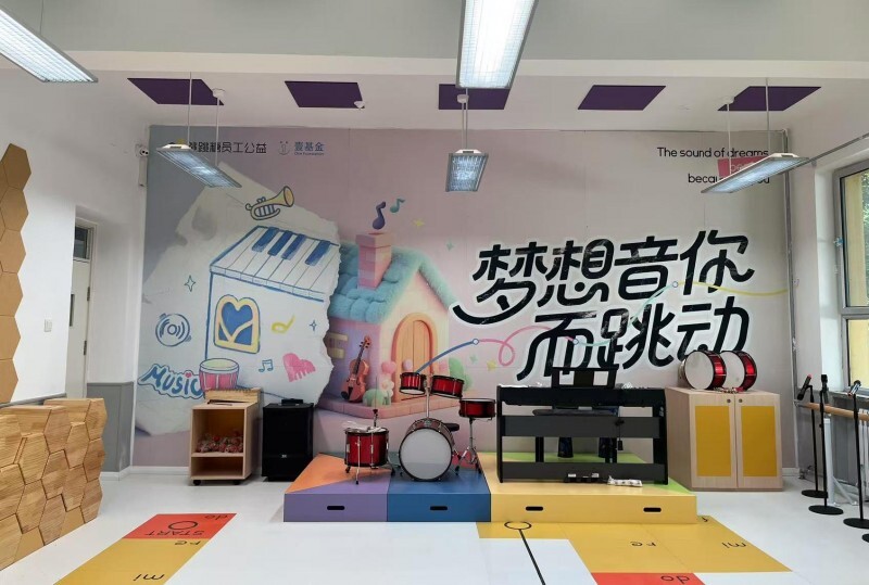 壹乐园公益计划始于青海玉树灾后重建的“乡村学校硬件改造”。项目一直坚持“儿童友好”理念,音乐教室最开始的模样,来自地震灾区孩子们的想象:彩色的墙壁、可移动的桌椅、能敲打的音乐凳。2.0版本将教室的六面进行了功能组合,使其具备更灵活开放的教学空间,让孩子们可以更自由地创作与表达。同时,也在尝试与字节跳动跳跳糖员工公益合作,将背景墙打造成融合文化、美育理念的“沉浸式艺术空间”。“让每一位乡村孩子都能阳光自信地走入人群,落落大方地站上舞台,勇敢地表达自我——这正是音乐教育本来的价值所在。” 壹基金儿童发展部主任杨建说。