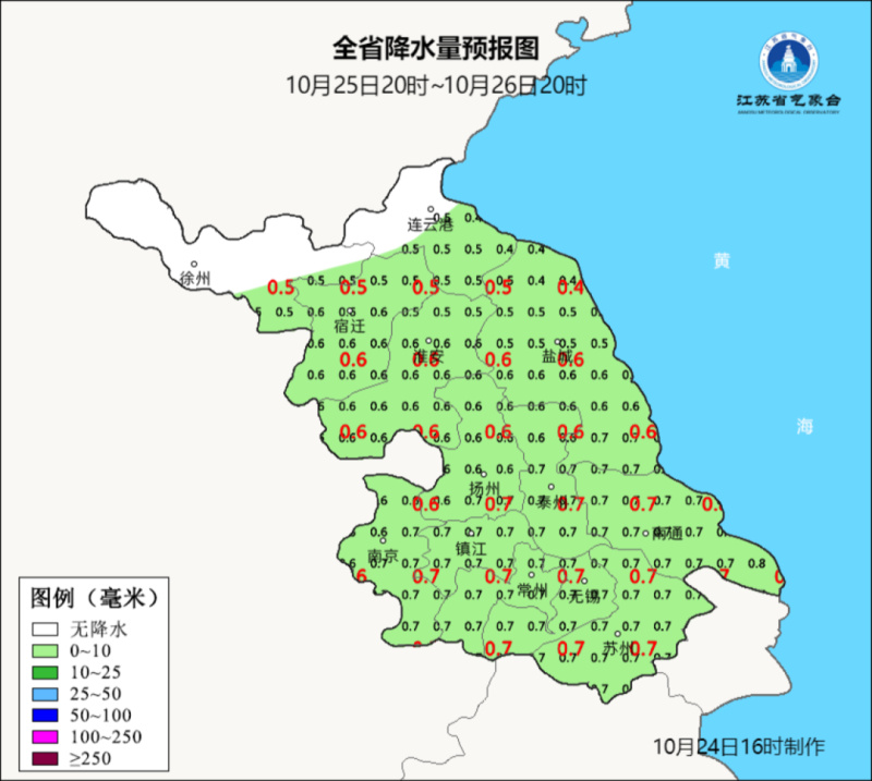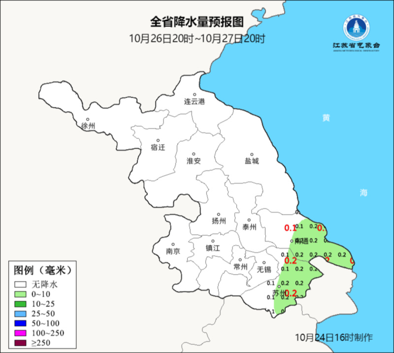 明天全省有一次弱降水过程,26-27日全省以多云天气为主。
