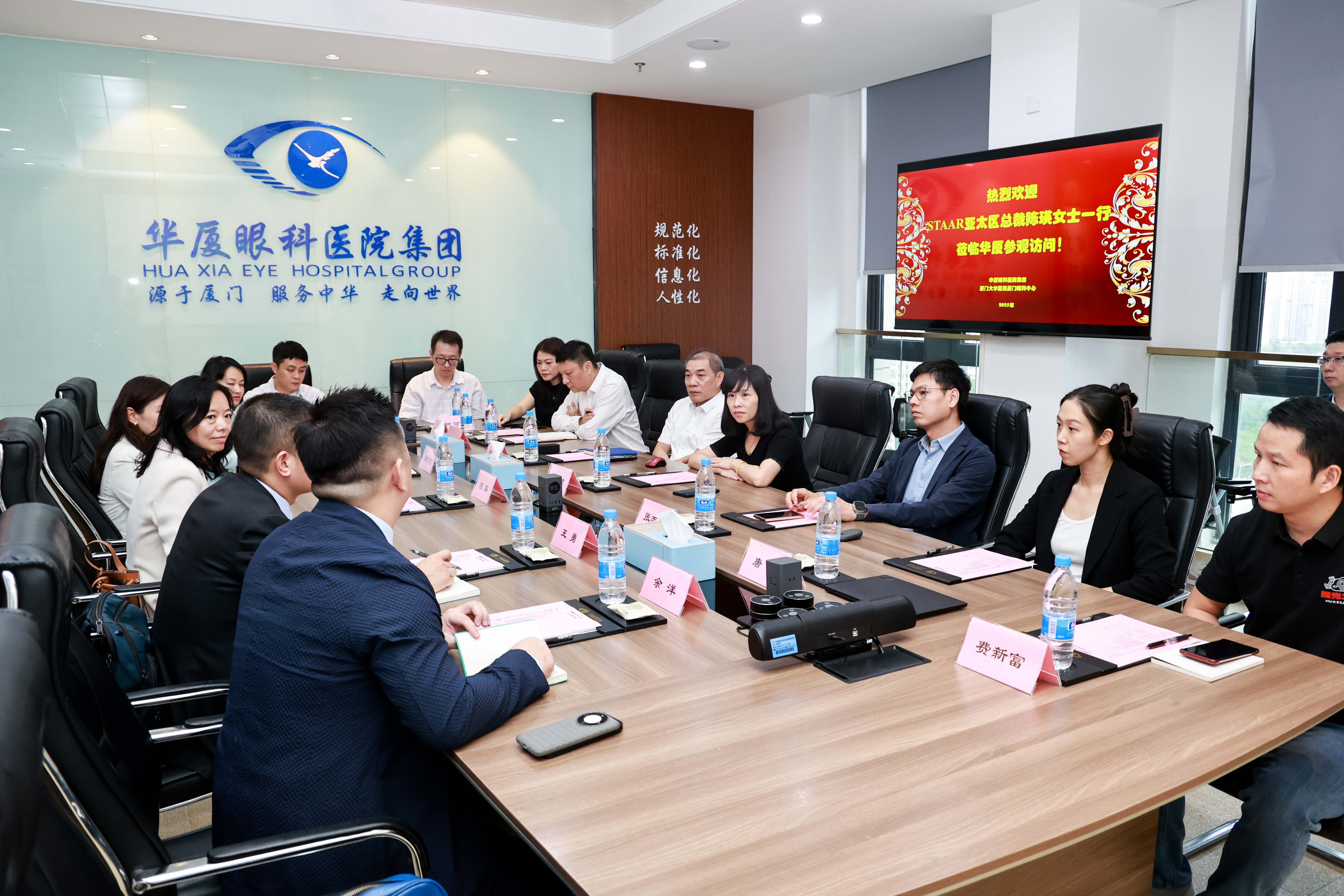 10月22日,STAAR Surgical亚太区高级副总裁兼中国区总经理陈瑛女士一行到访华厦眼科医院集团,开展深度参访与交流。集团领导赖玮琼、陈凤国、张志勇及相关部门负责人共同参会,双方全面复盘2025年合作成果,并就2026年战略规划与新产品上市凝聚共识,推动双方合作升维提速,共启新程。