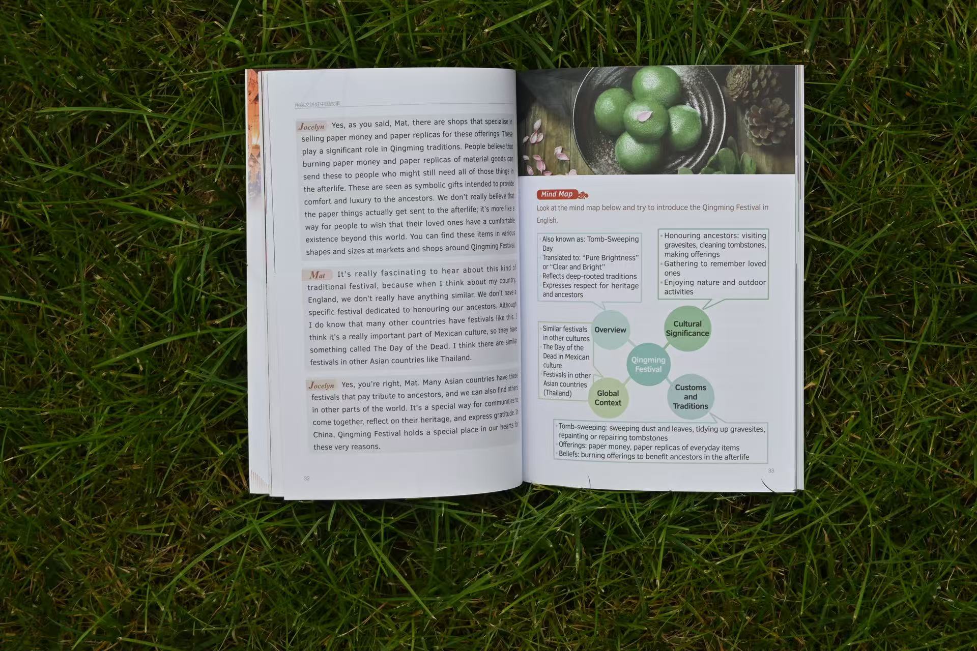 “播客”对谈形式是本书的一大亮点。一方面,中英教育专家的联袂参与,确保了英文表达的原汁原味与文化阐释的深度。另一方面,对话体保留了交流的真实感与即兴火花,引导读者切实感受中西思维差异,在轻松阅读中掌握恰当的英文表达与跨文化沟通方法。而那些融入个人情感与经历的故事,则让抽象的文化变得切身可感。跟随作者们的笔触,读者可以从一碟烫嘴的汤包、一顿热气腾腾的火锅、一次月下温馨的团聚中,感受四季流转间的文化印记,唤起记忆里的温情与乡愁,从中领略“生活即文化”。