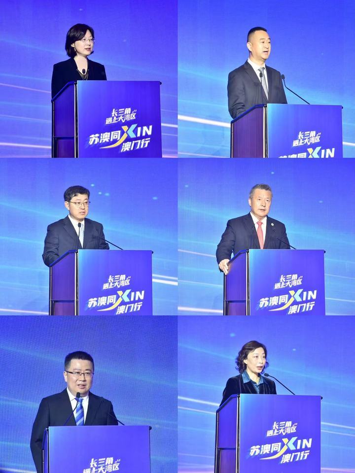 江苏省人民政府副省长赵岩,中央政府驻澳门联络办公室宣文部部长万速成,江苏省人民政府副秘书长徐华勤,江苏省委宣传部副部长、省委网信办主任杨力群,江苏省商务厅厅长司勇,江苏省港澳办副主任沈雁飞,澳门江苏社团总会会长何嘉慈,澳门新媒体联盟主席、澳门商报社长朱海生,江苏省广播电视总台副台长、集团副总经理季建南,澳广视中文新闻及资讯节目部总监刘婧,澳门莲花卫视副台长李虹祎出席当天活动并启动《长三角遇上大湾区 ——苏澳同 XIN》澳门行活动。
