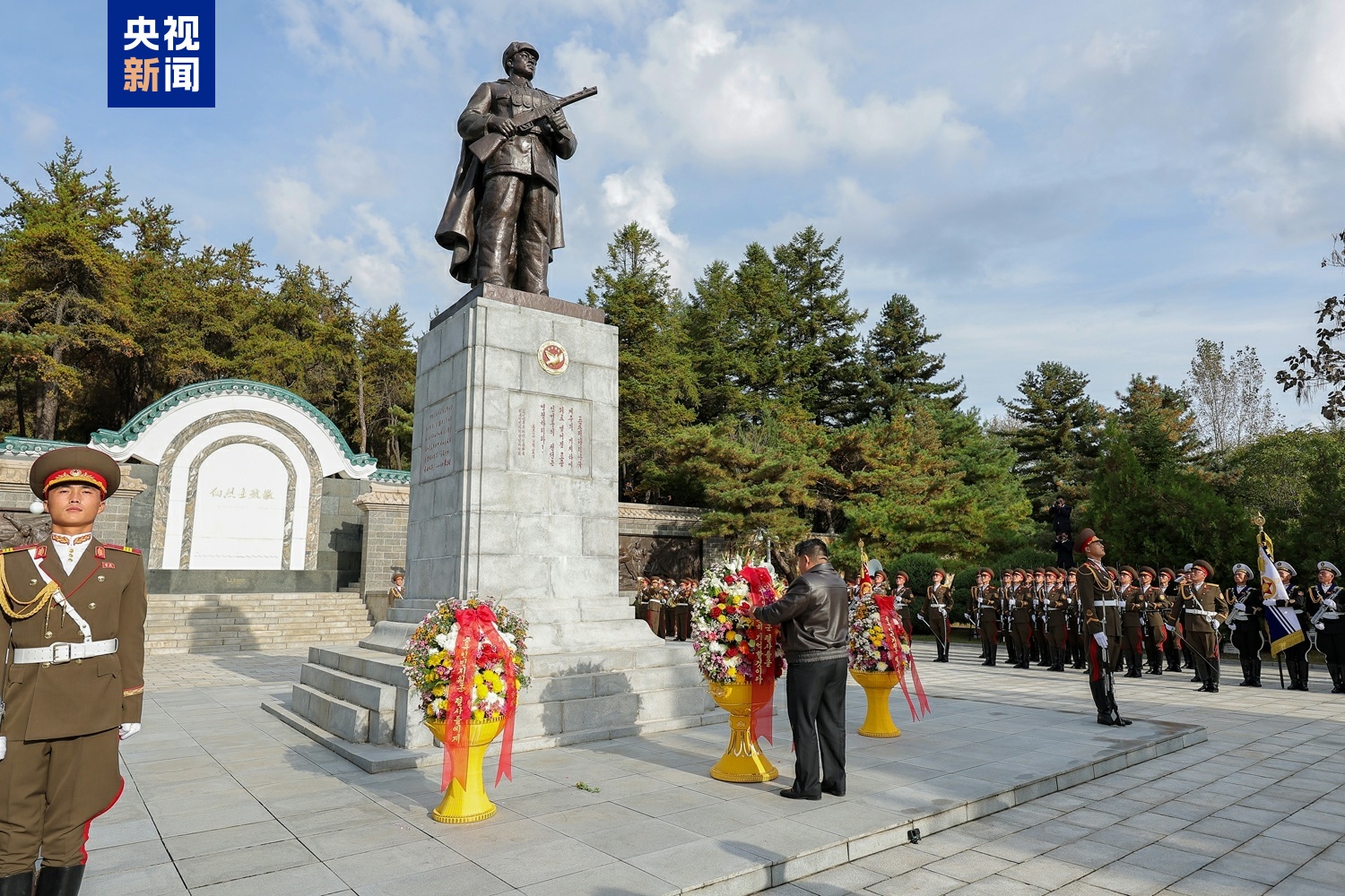 在中国人民志愿军抗美援朝出国作战75周年之际,朝鲜劳动党总书记、国务委员长金正恩10月24日参谒平安南道桧仓郡的中国人民志愿军烈士陵园,向烈士们表示崇高敬意。
