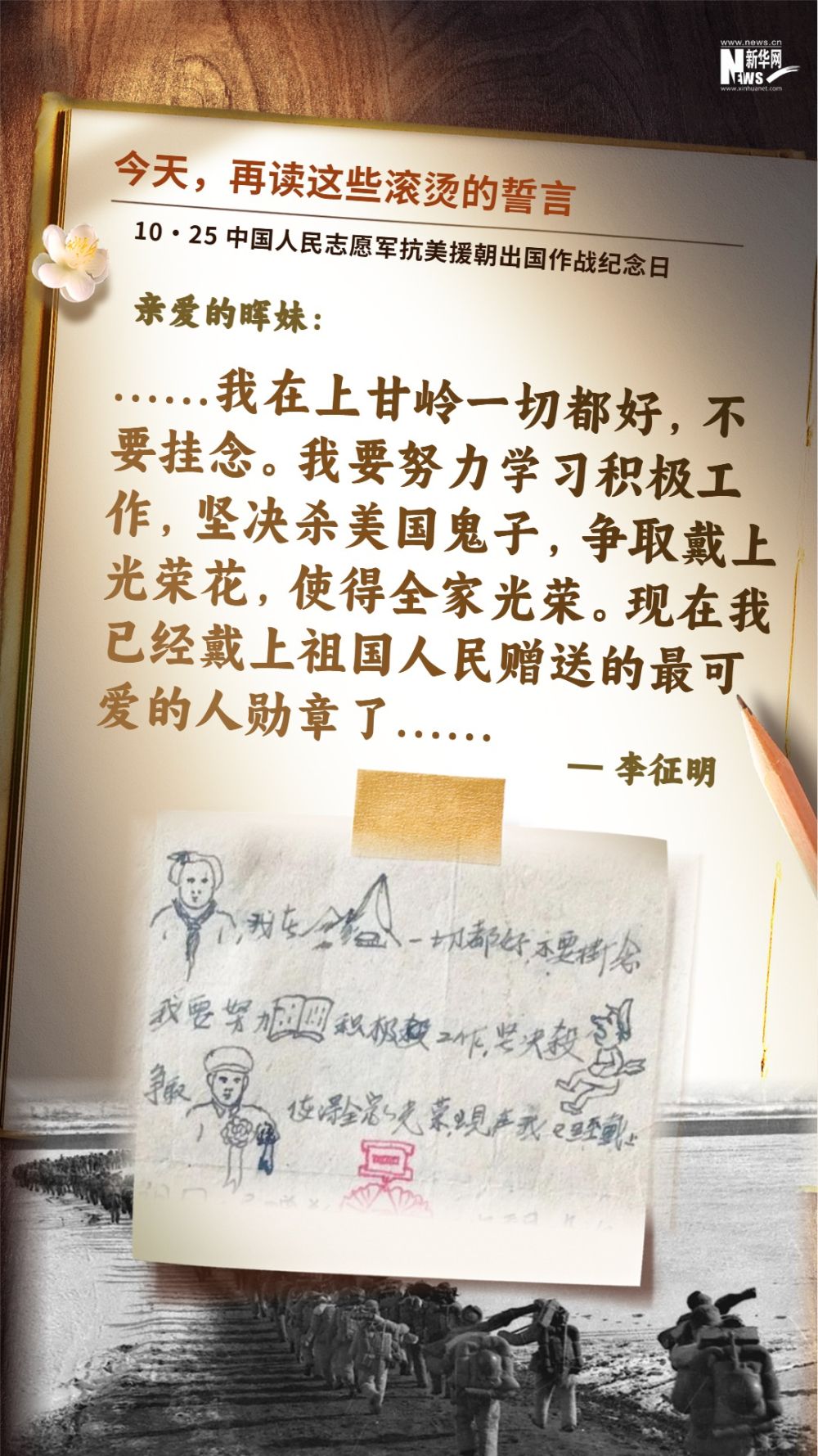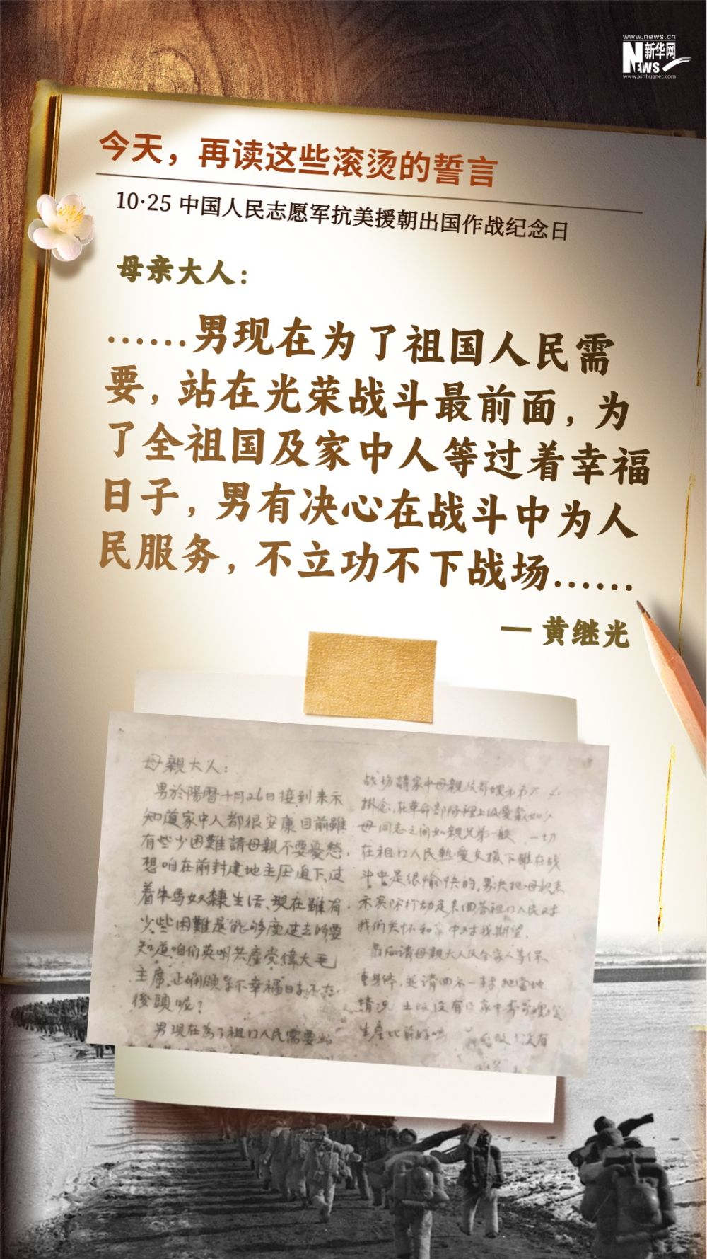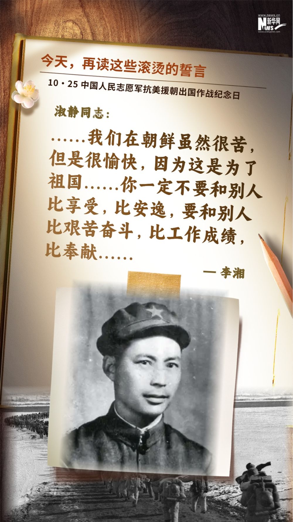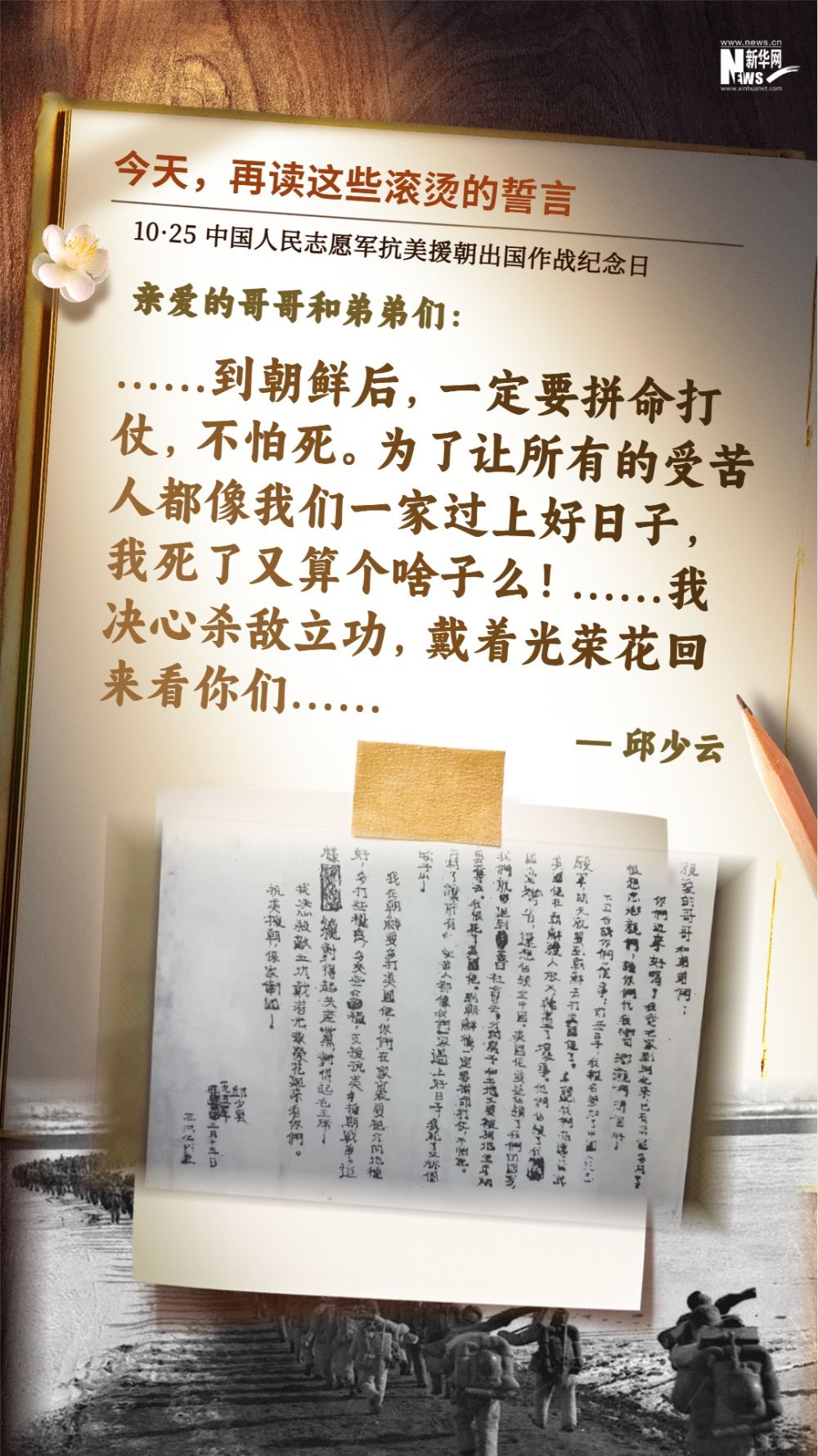 今天(10月25日)是中国人民志愿军抗美援朝出国作战纪念日,一起重温这些滚烫的誓言,感悟信仰的力量。
