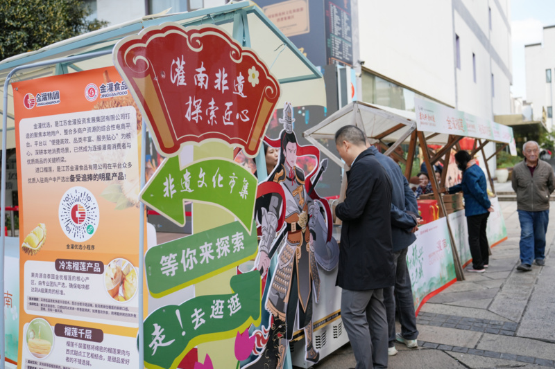 当天晚上,在南京熙南里文化街区,来自灌南的乡土艺术家为省城群众送上了一台精彩的文艺演出,让市民沉浸式体验灌南文化特色。舞台剧《劈山救母》、淮海锣鼓《话说新安镇》、舞蹈《酒韵》、村歌联唱、淮海戏、杂技等灌南原创节目接连上演,方言的鲜活与农耕、酿造文化的底蕴交融,赢得观众阵阵掌声。在乡村振兴集市上,蛙鱼制作、面塑、手工钩织、麦草画等灌南非遗技艺集中亮相,让南京市民触摸指尖匠心,特别吸引了小朋友的喜爱。灌南特色农产品展销,成为了活动现场的一大亮点。灌南县金灌集团、农发集团、粮食集团携县、镇两级强村公司集体亮相,推动汤沟美酒、硕项湖大闸蟹、灌南大米、菌菇珍品等产品集中展销,既为灌南乡村产业搭建了营销平台、助力消费帮促,也为都市“夜经济”注入了乡村活力。