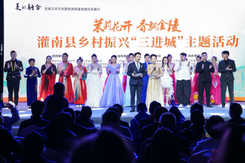 交汇点讯 10月24日,“茉莉花开 香飘金陵”灌南县乡村振兴“三进城”主题活动在南京开幕。活动由中共江苏省委驻灌南县乡村振兴工作队、灌南县新时代文明实践中心、中共灌南县委宣传部联合主办,得到了江苏省互联网协会、南京市秦淮区朝天宫街道的大力支持,通过开展优质农产品进城展销、优秀乡村文化进城展演、优秀乡土人才进城展示,全方位展现灌南非物质文化遗产的魅力与乡村振兴发展成果,为城乡交流融合搭建起坚实桥梁。省委驻灌南县乡村振兴“五方挂钩”工作协调小组各成员单位代表参加活动。