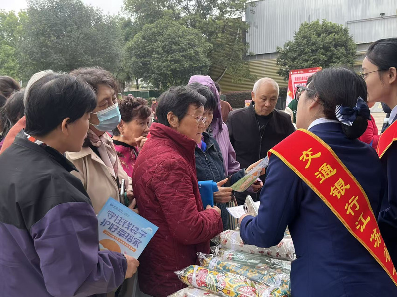 在交通银行江苏省分行设立的便民服务台前,气氛格外热烈,成为了活动现场又一个充满知识与关怀的人气聚集点。银行的志愿者们身着统一行服,面带微笑,用最通俗易懂的语言,为社区的老人们筑起一道坚实的金融安全“防护墙”。结合近期高发的“养老金账户升级”“以房养老”“投资返利”“保健品推销”“冒充公检法”等典型诈骗案例,像拉家常一样,为老人们剖析骗子的作案手法和话术陷阱。例如,他们详细解释了为什么“安全账户”绝对不安全,以及如何识别冒充银行或电商客服的诈骗电话,深入浅出讲解“防诈骗知识”。