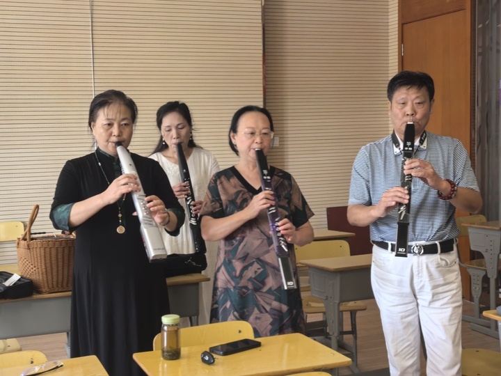 更有意思的是,68岁的居静全在这里发掘了音乐才能。退休前经营照相馆的他,如今迷上了电吹管。“刚开始连五线谱都认不全,老师就手把手教我。”半年下来,他已能吹奏《歌唱祖国》等曲目。
