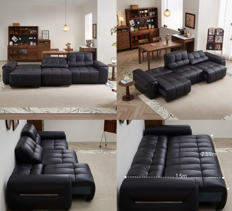 一款多色,奶油米、摩卡慕斯、黑茶色随心挑选,适配多种家居风格。电动功能位展开后,呈现十区立体式支撑,从头到脚贴合人体曲线,带来舒适包裹感。优选进口头层黄牛皮,大荔枝纹理品质感强,亲肤透气,耐磨耐用。