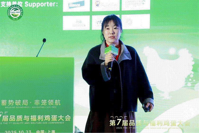 马宁女士介绍了CIWF的Egg Track项目及其推动全球非笼养转型的作用。CIWF成立于1967年,并获联合国粮农组织认可。她指出,2025年是非笼养发展里程碑:在715项承诺中,384项非笼养承诺截止于2025年。Egg Track追踪企业实际进展,2022年扩展至亚太地区,2025年纳入中国数据,要求企业按鸡蛋、蛋制品和原料类别报告转型百分比。马宁强调透明度对建立信任和可追溯性至关重要,鼓励通过年度更新和公开文件展示进展。Egg Track有助于识别领先与滞后企业,强化问责,并改善蛋鸡生活。