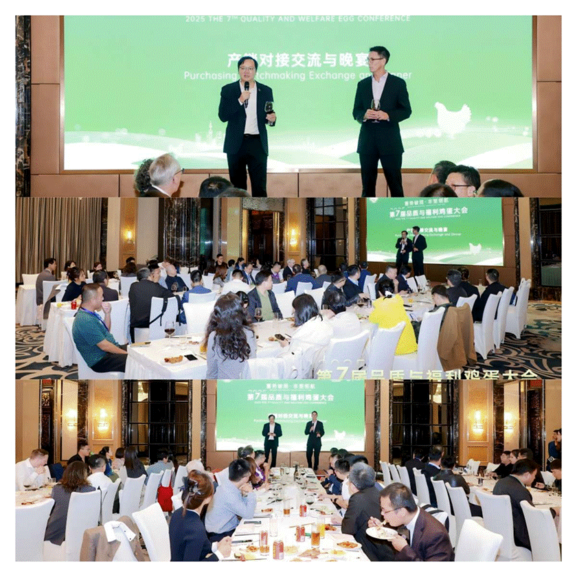 大会特别举办“产销对接交流与晚宴”,邀请多位行业嘉宾、采购商代表及非笼养鸡蛋生产企业负责人共聚一堂。活动旨在搭建高效沟通平台,促进供需双方深入交流与合作。与会嘉宾围绕产品采购、渠道拓展及品牌合作展开洽谈,现场气氛热烈。