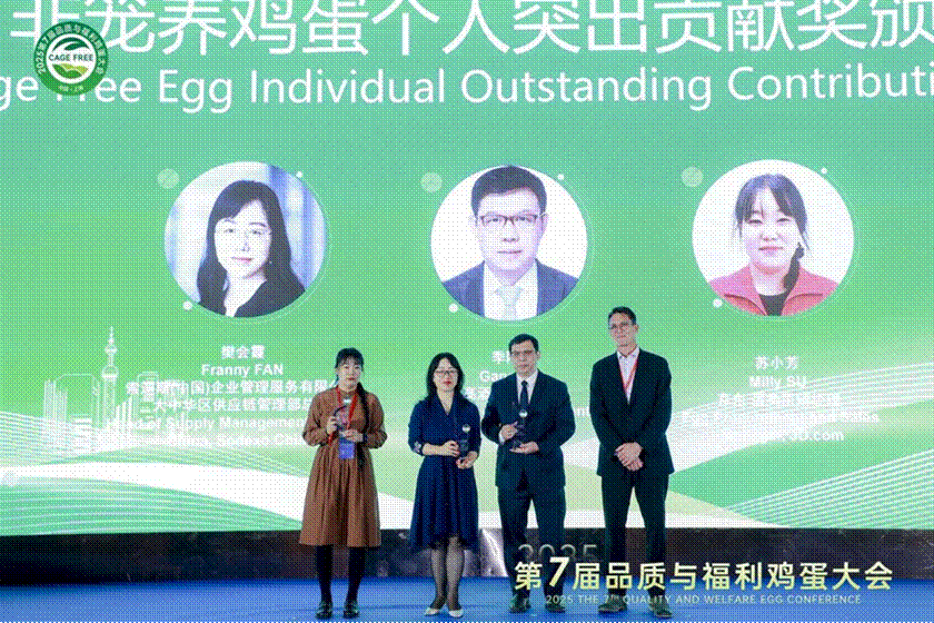 在推动 “非笼养” 鸡蛋理念普及与产业转型的进程中,行业革新的背后离不开关键个体的践行与担当。“2025 Cage Free Egg 个人突出贡献奖” 正式颁发,索迪斯中国大中华区供应链管理部总监樊会霞、雅高酒店采购总监季刚、京东蛋类采销经理苏小芳三位从业者凭借前瞻视野与落地行动,为非笼养理念的推广打开关键局面,成为行业标杆。表彰他们在各自领域为动物福利与非笼养产业发展作出的卓越贡献。