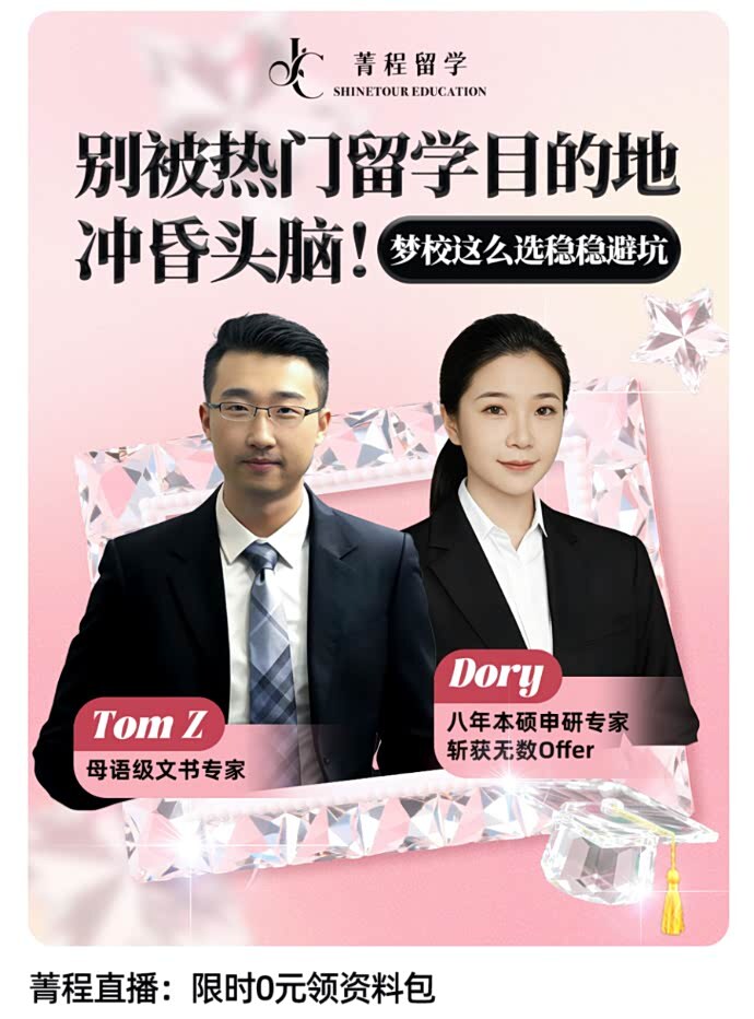10月24日,致力于为广大学子提供全球高校本硕申请服务的菁程留学,在其“本硕学术大咖面对面”IP下开启了第二场直播,进一步帮助学子避开留学选校误区、掌握不同地区录取逻辑。该场直播主题为“别被热门留学目的地冲昏头脑!梦校这么选稳稳避坑”,历时两小时,围绕选校策略与文书优化两大核心,为怀揣留学梦想的学子搭建专业高效的交流平台,以深度指导破解申请迷局,延续了系列直播的优质服务品质,赢得参与者广泛好评。单场点赞量达2.6万次。这是菁程留学“本硕学术大咖面对面”IP下的第二场高质量留学干货直播,以专业申请干货学子直击莘莘学子申请痛点。
