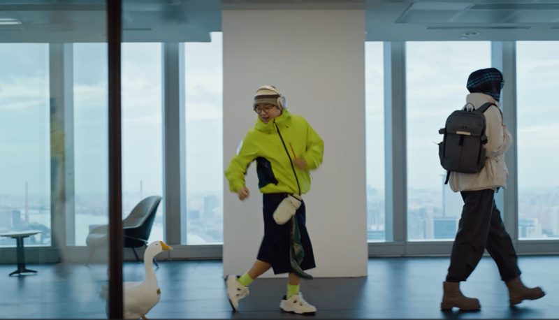 其中抽离现实的场景转换更是令人意外:大白鹅被土豆请来助力、同事夸张表情强调品质升级、最后土豆带着大鹅秒换造型加入了一场办公室里的羽绒时装秀。短片在笑料百出中结束,最终落回的却是品牌对消费者真正在乎的冬季羽绒质价比需求的温暖回应。