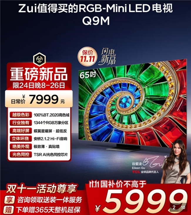 技术的本质应该是服务于人,而非用复杂参数构筑认知壁垒。对普通消费者而言,无需理解BT.2020色域覆盖率的计算方式,也不必深究发光芯片的材质差异,他们最关心的是:在合理的预算内,能否获得实实在在的色彩提升,是否能够享受更好的观影体验?正是基于这样的消费洞察,TCL在传统RGB-Mini LED技术基础上进行了改良,并将其搭载在了前段时间新推出的Q9M系列上,不仅解决了核心技术痛点,更将价格拉至万元以内,让前沿技术真正回归使用价值。