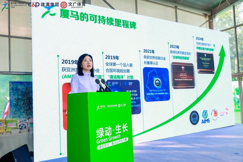 厦门文广体育代表回顾了厦门马拉松二十三年来在可持续办赛方面的持续努力,强调跑者、企业伙伴、城市各方在赛事绿色发展中的重要作用,呼吁各方携手参与到可持续赛事的共建中。