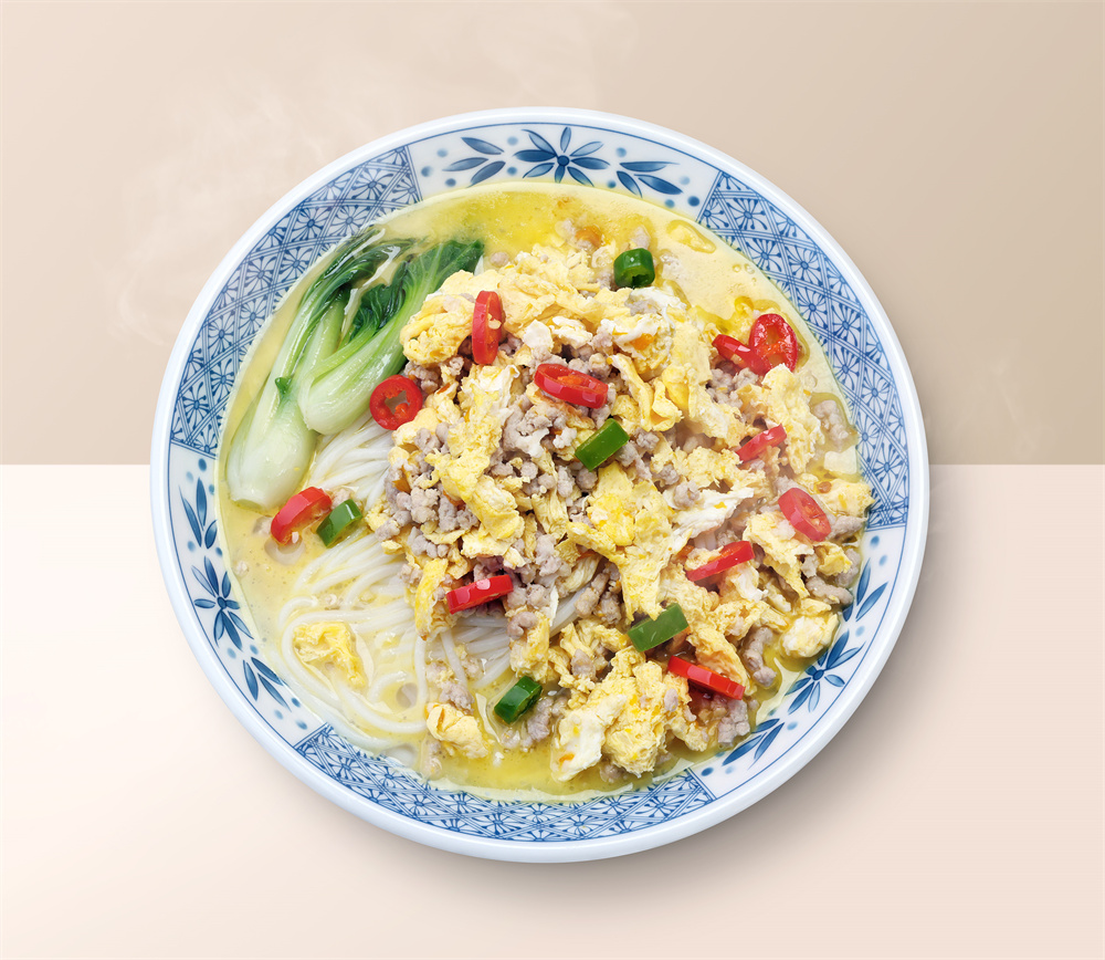 鸡蛋、辣椒与猪肉沫现炒,加入秘制酱料,锅气十足,浇头分量满满。口感层次更丰富,营养均衡。定价仅13.9元/碗,可免费续加米线,满足不同消费者需求。