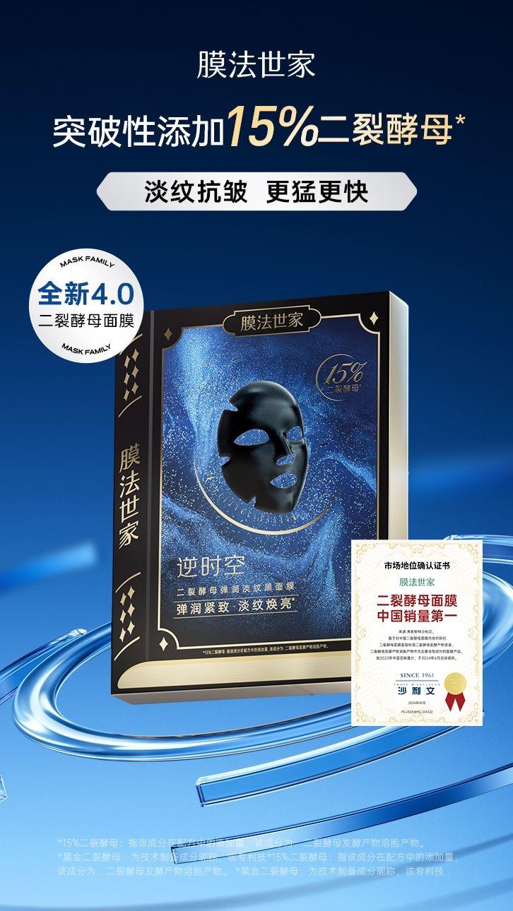 当肌肤在换季时节拉响警报,膜法世家二裂酵母面膜的底气,源于其独家专利成分“黑金二裂酵母”(专利号:ZL 2022 1 1636731.6)。该成分由膜法世家与华南理工大学华南协同创新研究院联合研发,通过独家共生菌株发酵技术,将二裂酵母与黑豆、黑莓等植物进行复合发酵,使最终产物“黑金二裂酵母”中多肽含量提升至普通二裂酵母的26倍,化身一位高效的肌肤“信号官”,有效激活皮肤中的成纤维细胞,促进合成新的I型胶原蛋白,并抑制弹性蛋白酶活性,帮助淡化纹路、紧致肌肤。