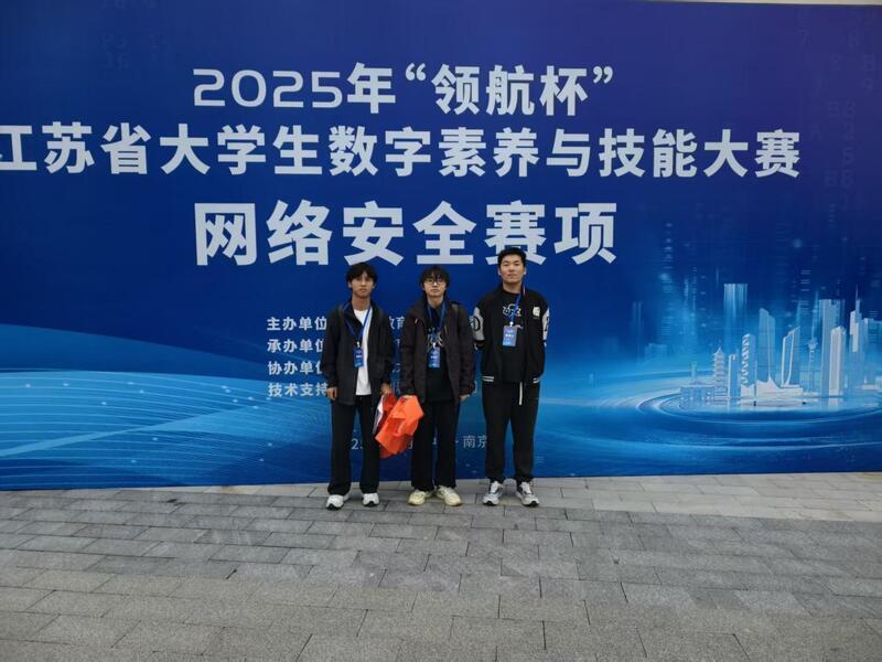 10月26日,2025年"领航杯"江苏省大学生数字素养与技能大赛决赛成功举办,常州信息职业技术学院网络安全大师班,由杨雄老师指导的丁瑞、董智雄、赵昱杰三名同学在网络安全赛项中荣获省特等奖。