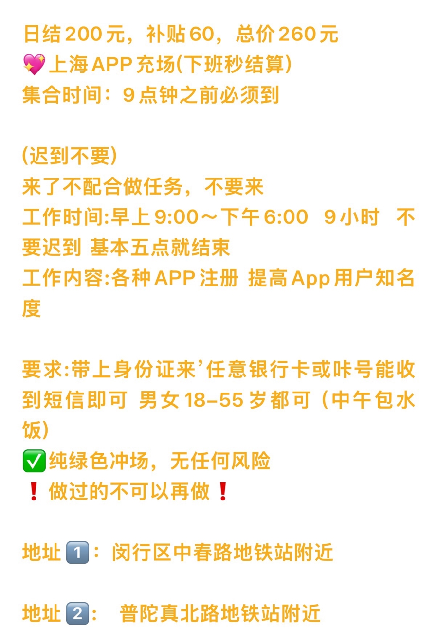 App充场兼职的招聘信息,几乎随处可见。很多类似的招聘信息里仅声明需要带着身份证、银行卡,注册App,提高应用的知名度,完成任务后可以赚取260元。为了摸清其中的套路,记者报名前去体验。