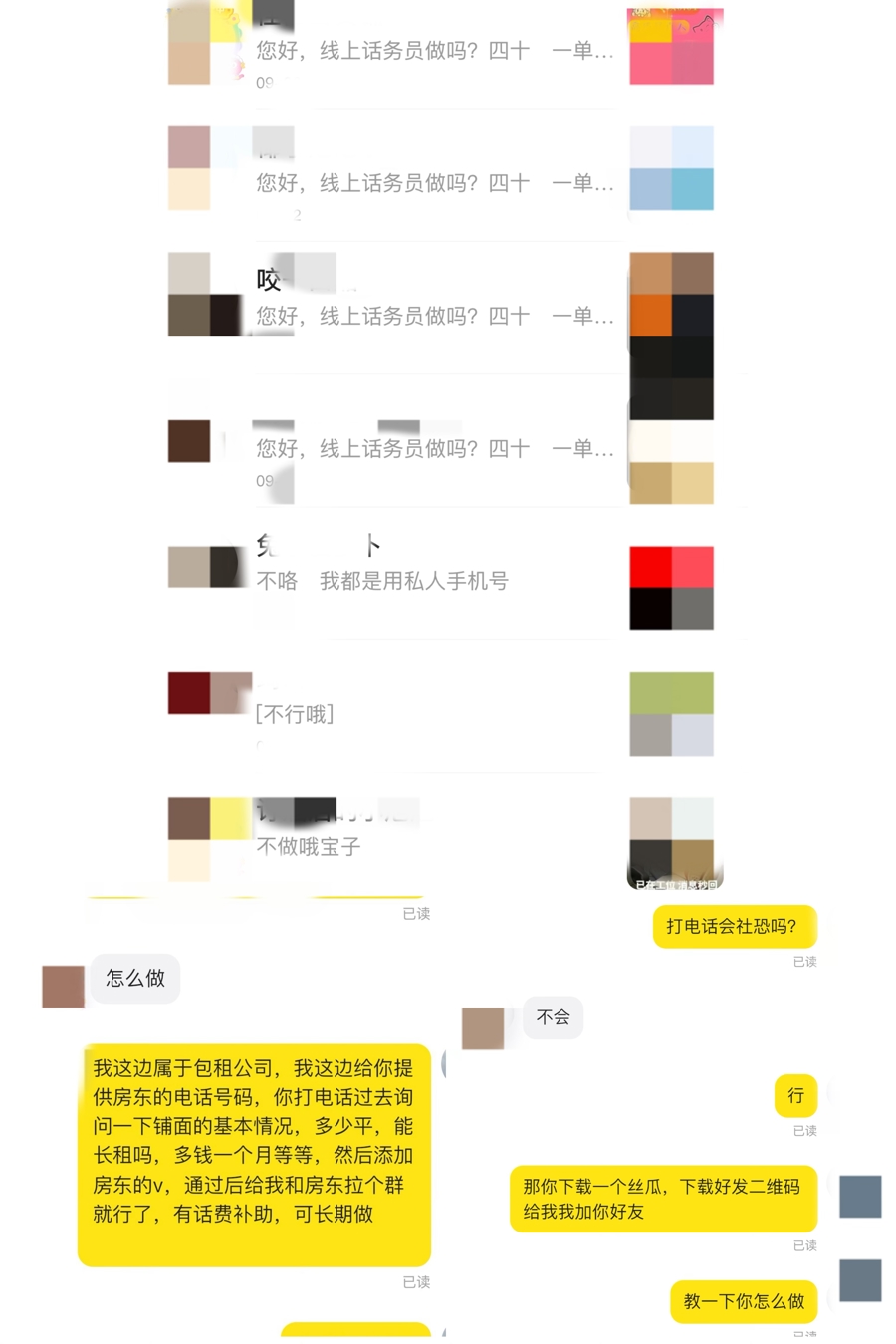 可随后的操作,显然和组长的承诺背道而驰。记者看到,记者的闲鱼账号上,突然弹出了数十条“本人”发送的消息,颇有些早年QQ账号被盗的意味。“线上话务员做吗?四十一单,一单一结账,有需要可以下载软件。”就这样,记者眼睁睁看着账号被他人使用却无法进行阻止,直到平台设置的修改手机号的两个小时冷却期结束,记者才总算改回了自己的手机号。