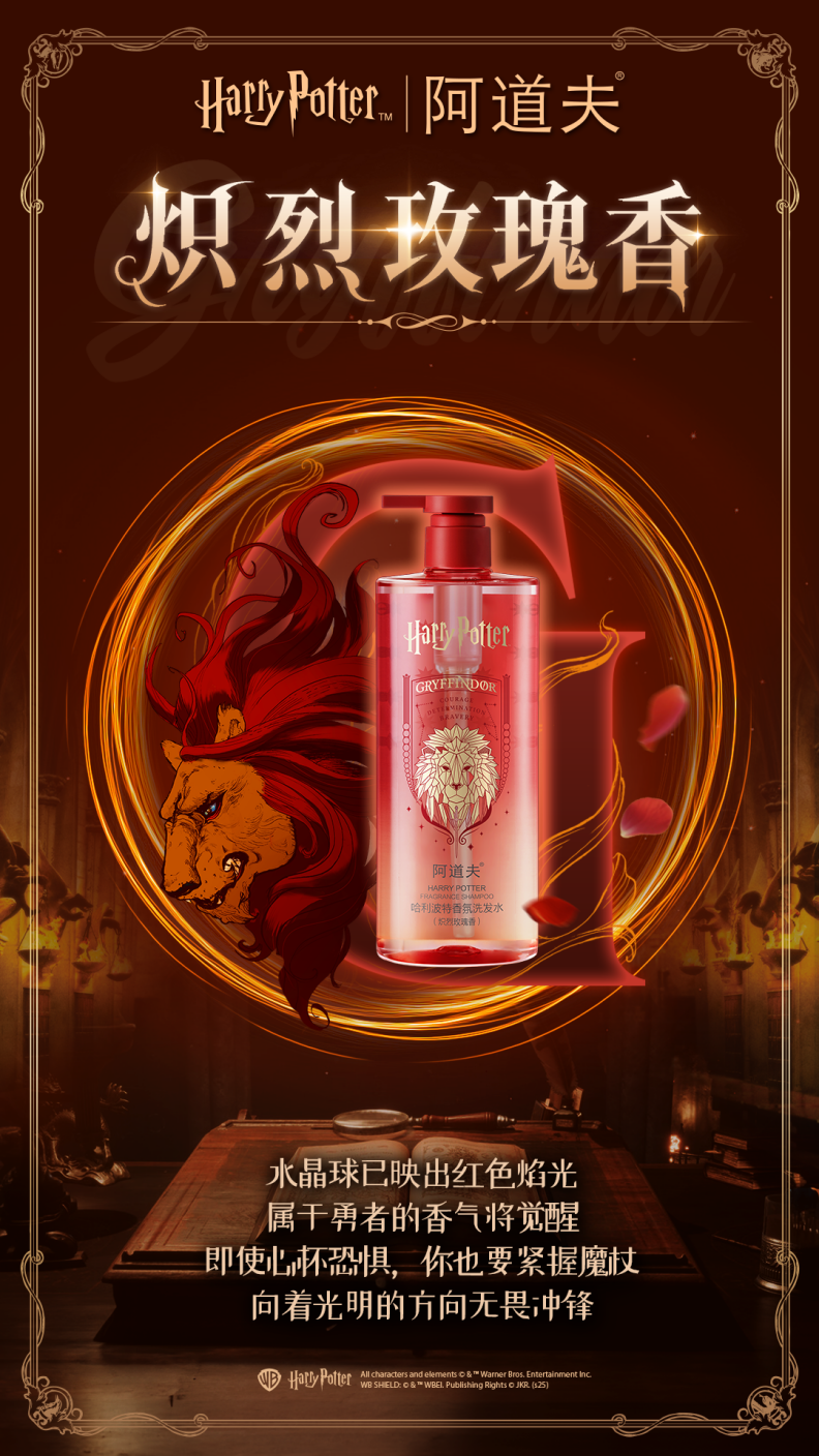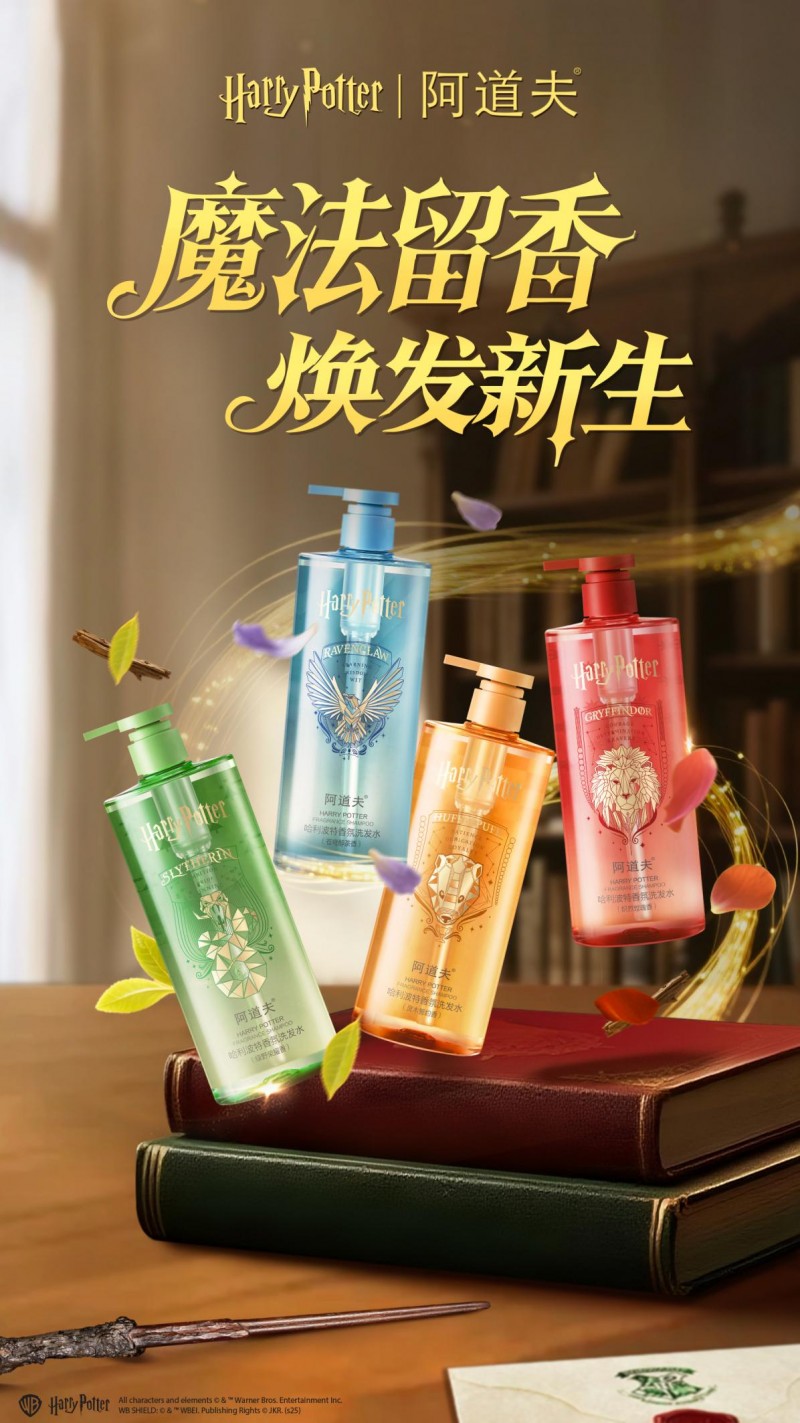 当情绪消费成为消费市场的主旋律,我们购买的早已不只是物品本身,还是一份能即时驱散焦虑的欢愉、释放压力的出口,以及触动内心的共鸣。阿道夫精准捕捉这一趋势,10月份携手全球顶流IP哈利波特,推出阿道夫哈利波特洗发水,用“爱的魔法”触动消费者和亿万哈粉内心的共鸣,在四大学院的“香氛魔法”里与自己「香」处,把头皮重新养一遍,也把自己重新养一遍。