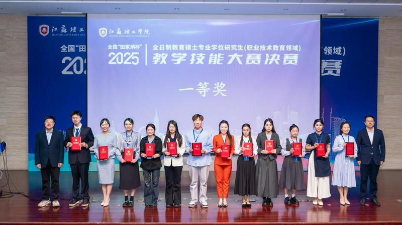 据悉,本次大赛由田家炳基金会冠名,全国教育硕士研究生教学技能大赛专家委员会指导,江苏理工学院主办,江苏理工学院研究生院和炎培学院共同承办,是高等教育质量监测国家数据平台认定的唯一的国家级教育硕士教学技能竞赛,是目前国内层次最高、规模最大的教育硕士学科技能竞赛。经过激烈角逐,本次教学技能大赛最终评选出一等奖12名,二等奖23名,三等奖45名,优秀教学设计奖34名,优秀指导教师奖35名。江苏理工学院获一等奖1项、二等奖3项、三等奖5项,4位老师获优秀指导教师奖,被授予2025年全国“田家炳杯”全日制教育硕士专业学位研究生(职业技术教育领域)教学技能大赛“特别贡献奖”。(陈春霞 郝永贞)
