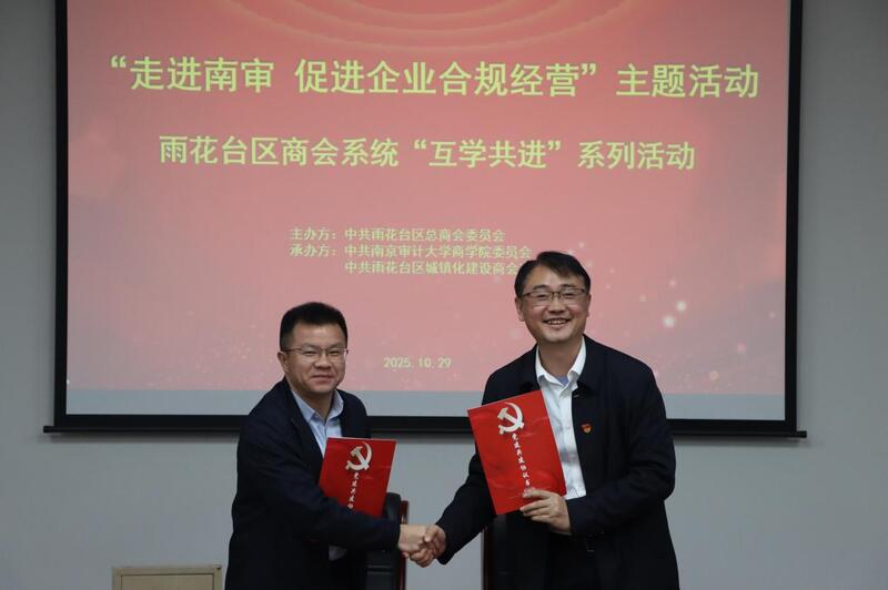 面对市场的风浪,民营企业如何才能不偏航、不触礁?合规经营这条“生命线”又该如何从理念认知转化为实践自觉?10月29日下午,南京审计大学的校园里智慧激荡,南京市雨花台区商会系统“互学共进”系列活动走进南京审计大学,政企校三方携手,围绕民营企业合规经营这一核心课题,展开深度交流与实践探讨,为区域民营经济高质量发展注入“红色动能”与“智力支撑”。