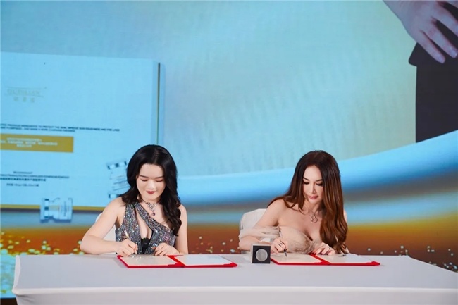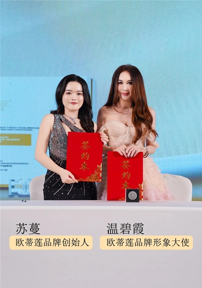 欧蒂莲品牌创始人--苏蔓与欧蒂莲品牌代言人--温碧霞现场开展隆重的签约仪式!