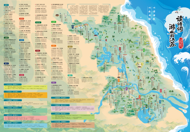 翻阅“读诗词·游水韵江苏”手绘地图,“故人西辞黄鹤楼,烟花三月下扬州”“朱雀桥边野草花,乌衣巷口夕阳斜”“春江潮水连海平,海上明月共潮生”……这些镌刻在中小学课本里的经典诗句,如今有了一张清晰的“地理坐标”。