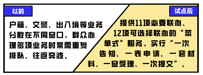 在必联办事项中,例如,在办理“变更更正姓名”后,原有身份证和驾驶证已经失效,需要同步办理“身份证补换领”和“驾驶证补换领”,在窗口把上述三个事项打包在一起,为群众“一站式”办理。