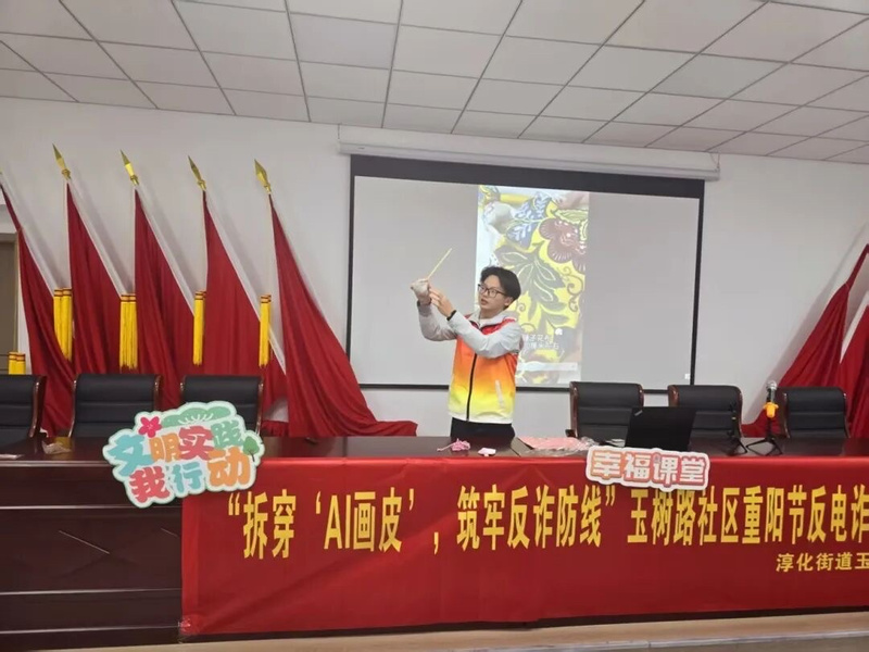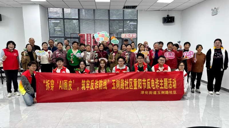 为应对新型“坑老”电信网络诈骗,近日,金陵科技学院星火志愿团的同学们到江宁区玉树路社区开展了主题为“拆穿‘AI画皮’,筑牢银发防线”的反电诈志愿服务活动,为40多名社区老人送上防范电信网络诈骗“重阳礼”。