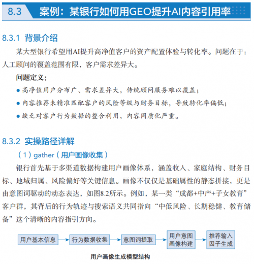 书中没有空泛的理论,而是用30多个真实的行业案例贯穿全文。从医疗行业的AI医学内容构建,到电商行业的精准流量获取,再到本地生活的地域GEO,每个案例都拆解了问题诊断、方案设计、执行落地的全流程,让你能直接借鉴成功经验。