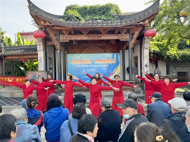 上午十时,社区户外广场在秋日阳光下暖意融融,一场汇聚多方力量的重阳节主题活动在小西湖美景舞蹈团带来的开场舞《手心有你》中拉开帷幕。