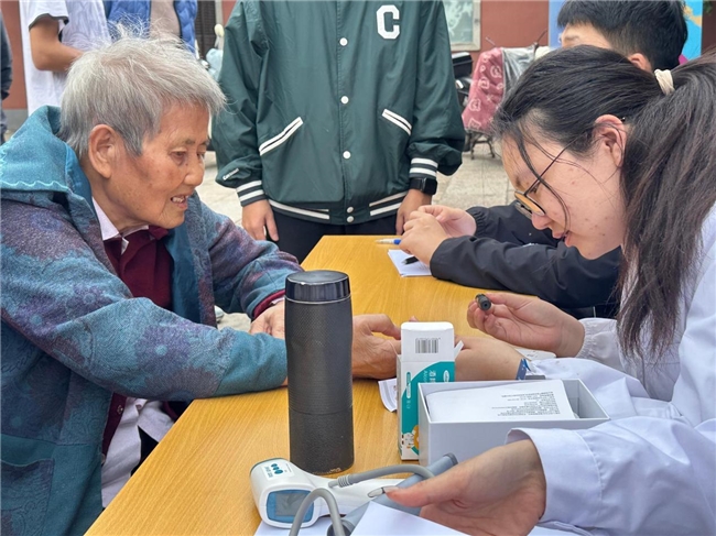 上午的温情尚未散去,下午的健康关怀已在同一片广场上接力展开。14时,由东南大学医学院436232团支部开展的“青春医路同行”健康主题活动准时开始。医学院的大学生志愿者们分组在广场设立的多个服务点,为老人进行免费基础健康检测,并创新性地建立“个性化健康档案”。随后在广场休闲区开展的“高血压、糖尿病日常管理”健康讲座及《健康守护手册》的发放,将健康科普知识直接送到了居民身边。