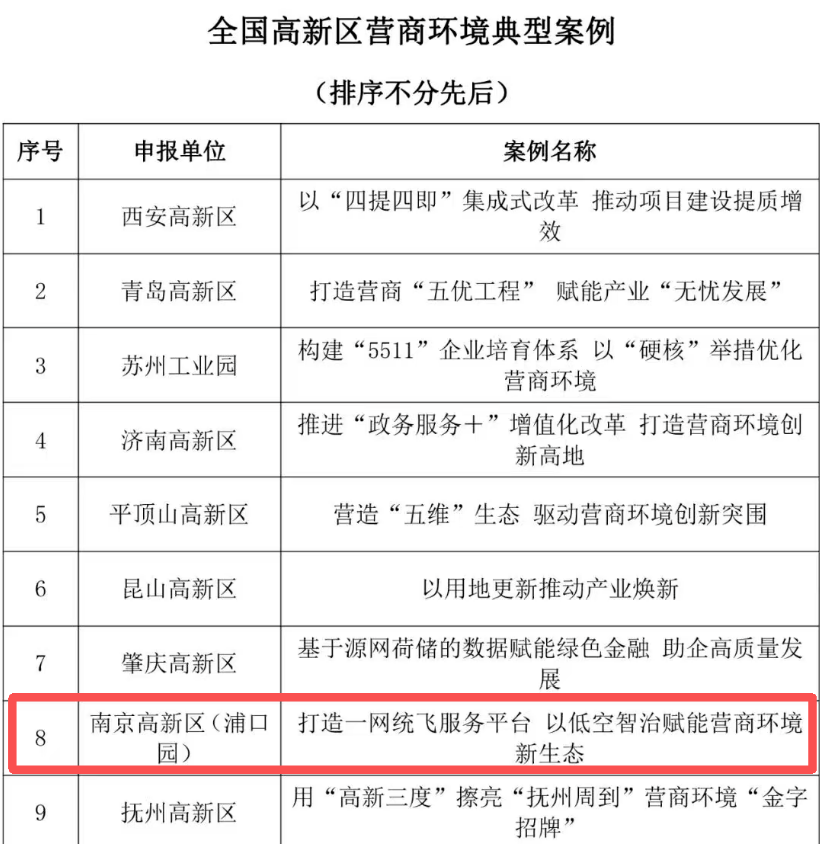 此次入选,标志着浦口高新区在优化营商环境、培育低空经济新业态、发展新质生产力方面取得的扎实成效获得了国家级认可,其探索形成的经验做法对全国高新区具有重要的示范意义和推广价值,为全国高新区创新发展贡献“南京经验”。