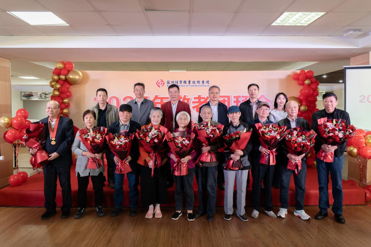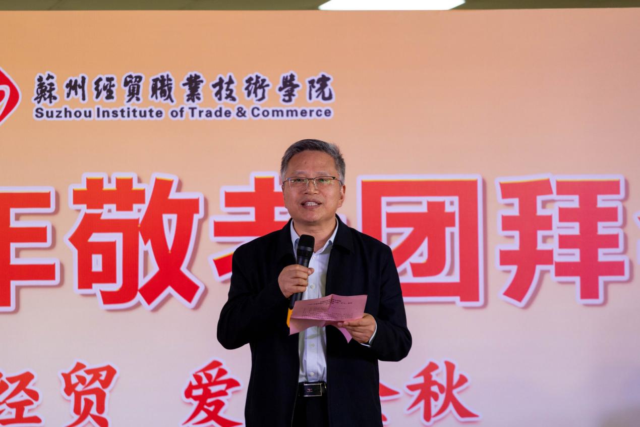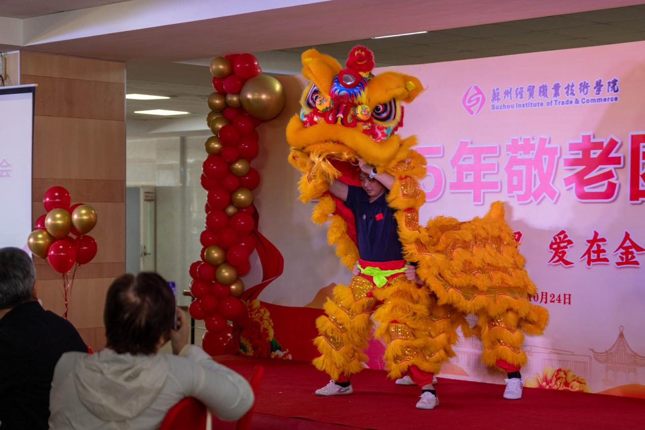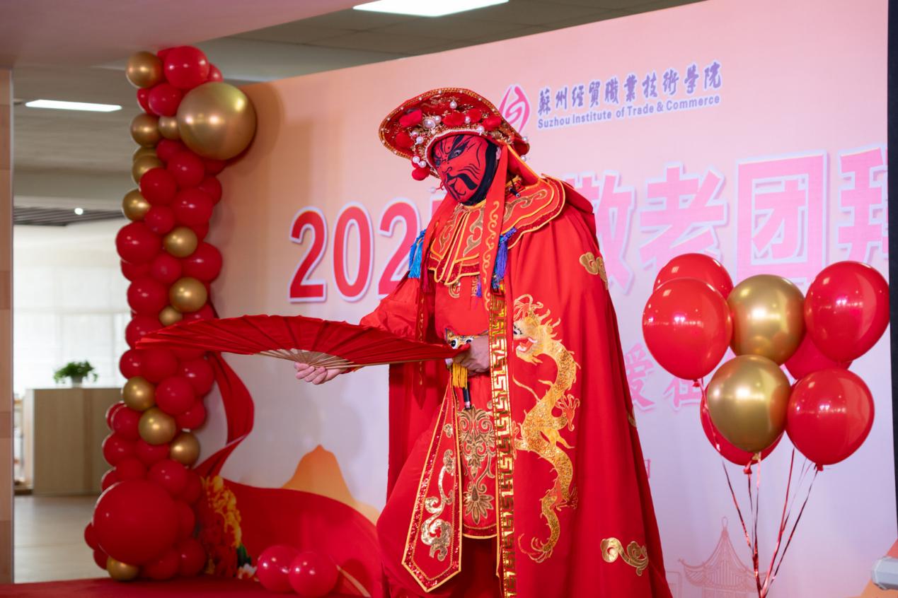 金秋送爽,暖意融融。伴随着欢快的音乐,精彩的变脸秀和舞狮子,瞬间点燃了现场气氛,掌声与喝彩声此起彼伏,为苏州经贸职业技术学院团拜会活动拉开序幕。2025年10月24日,苏州经贸职业技术学院教工餐厅张灯结彩、笑语盈盈,一年一度重阳节敬老团拜会在此隆重举行。学院党政领导班子成员和相关职能部门、各二级学院负责人以及近百名退休老同志参加了团拜会。学院党委副书记朱伟峰主持团拜会。