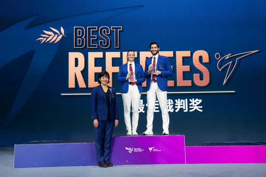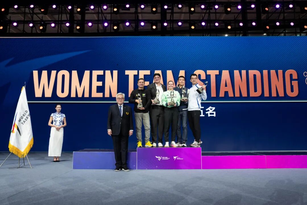 现场,无锡市向2027年世界跆拳道锦标赛主办方哈萨克斯坦的代表转交世锦赛会旗。现场还颁发了各类单项、团体奖项,一起见证荣誉时刻。
