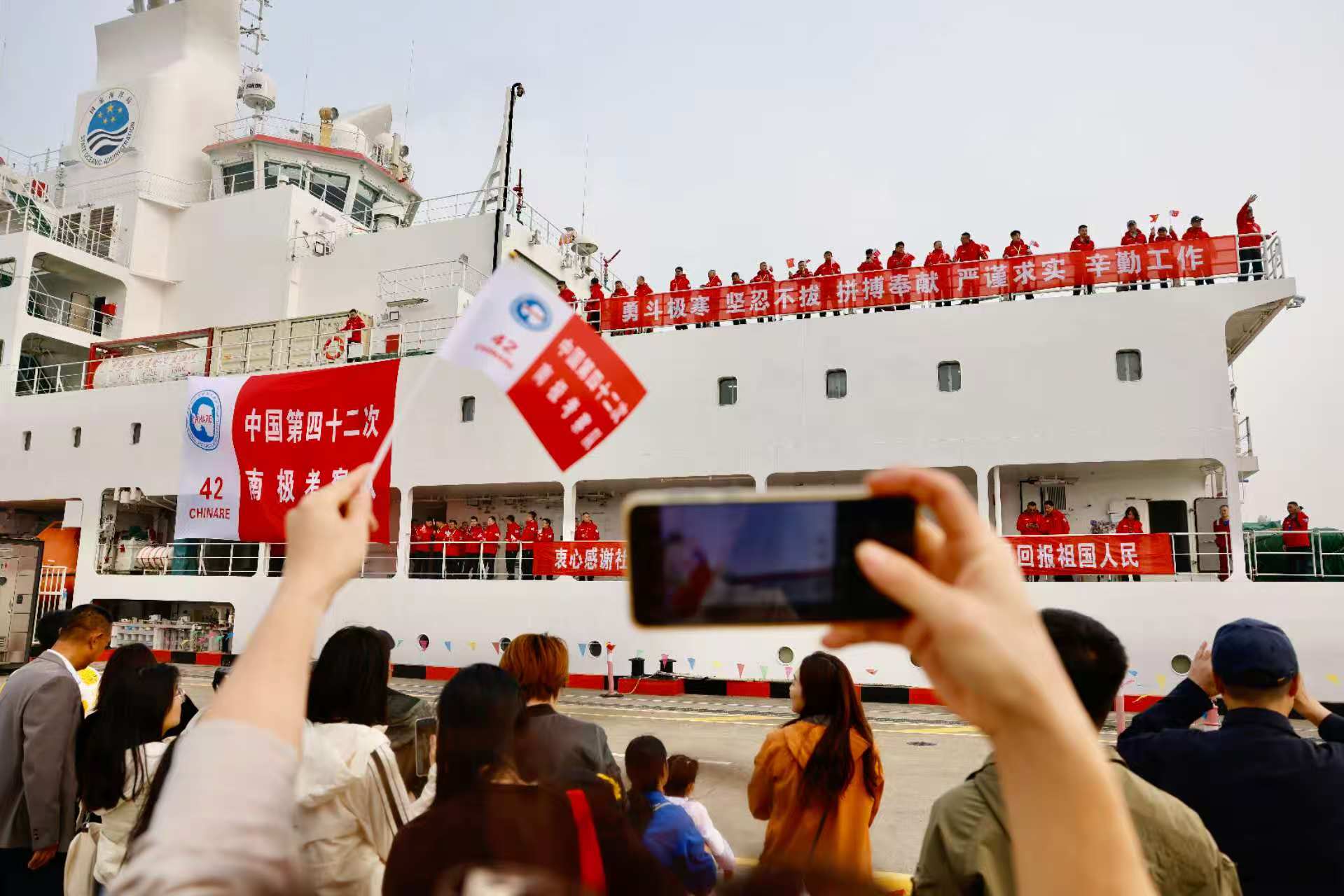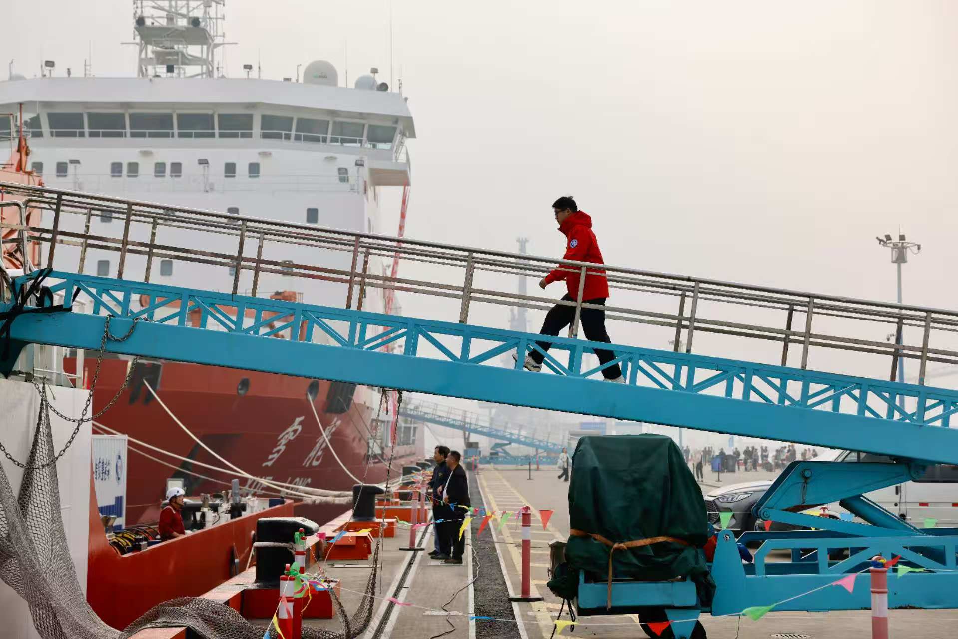交汇点讯 11月1日上午,上海极地考察国内基地码头,“雪龙”号和“雪龙2”号科考船的汽笛声划破长空。东南大学自动化学院2025级博士生许银辉与送行的师长告别后,稳步踏上舷梯,登上“雪龙2”号。随着船身缓缓驶离码头,许银辉正式踏上中国第42次南极科考征程。