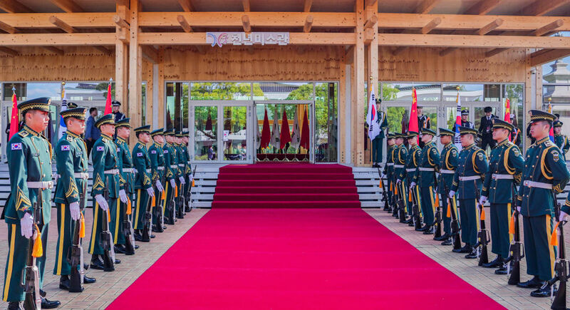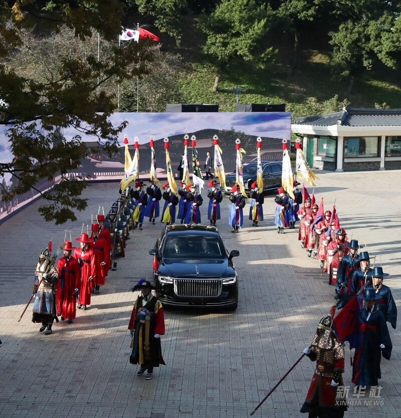 当地时间11月1日下午,国家主席习近平出席韩国总统李在明举行的欢迎仪式。