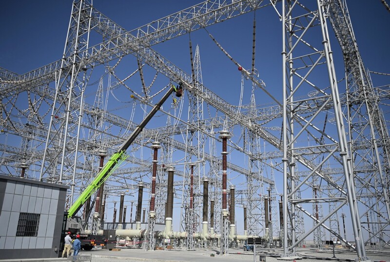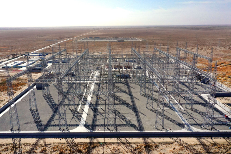 作为环绕塔里木盆地构建的“能源圆环”,新疆环塔里木盆地750千伏输变电工程整体由巴州750千伏变电站工程、巴州—库车一二回、库车—阿克苏—巴楚一二回、巴楚—莎车—和田、莎车—和田二回、和田—民丰—且末—若羌、巴州—铁干里克—若羌等9项750千伏输变电工程分阶段施工完成。工程全线包含9座变电站、1个开关站,环线总长4197千米。投运后,南疆电网彻底终结长链式供电格局,形成“北接南延、西连东送”的750千伏枢纽型骨干网架,最大供电能力提升80万—100万千瓦,新能源消纳能力新增800万千瓦,显著提升供电安全性与可靠性,强化风电、光伏发电等新能源电力的汇集与送出能力,为环塔里木千万千瓦级清洁能源供应保障区建设筑牢根基。