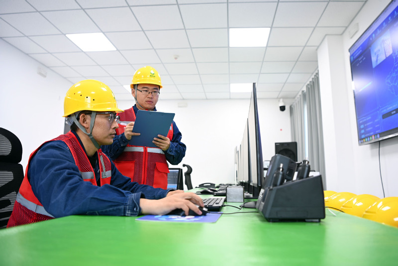 2025年10月19日,在且末750千伏变电站主控楼,运维人员执行调度指令进行送电操作。(马元摄)