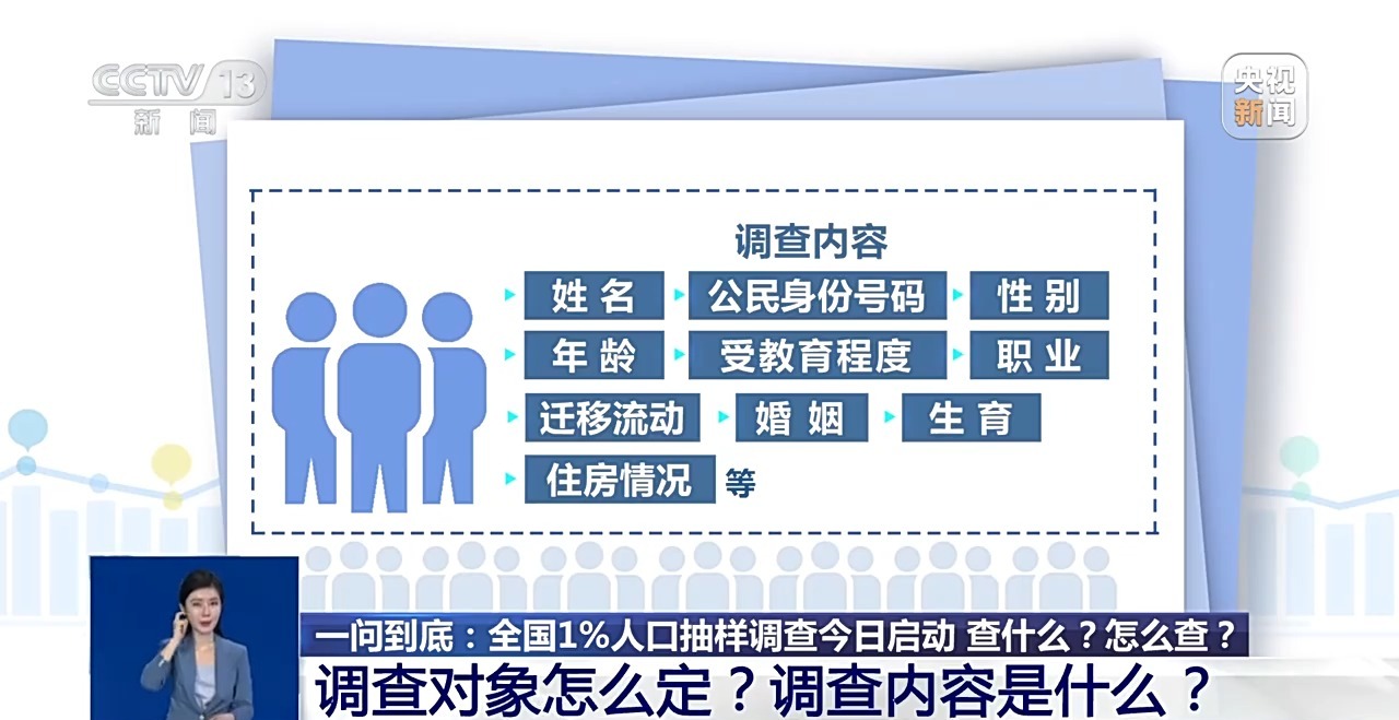 11月1日,全国1%人口抽样调查正式启动。什么是全国1%人口抽样调查?全国1%人口抽样调查主要查什么?怎么查?为什么要进行这项调查?《一问到底》为你一一解答。