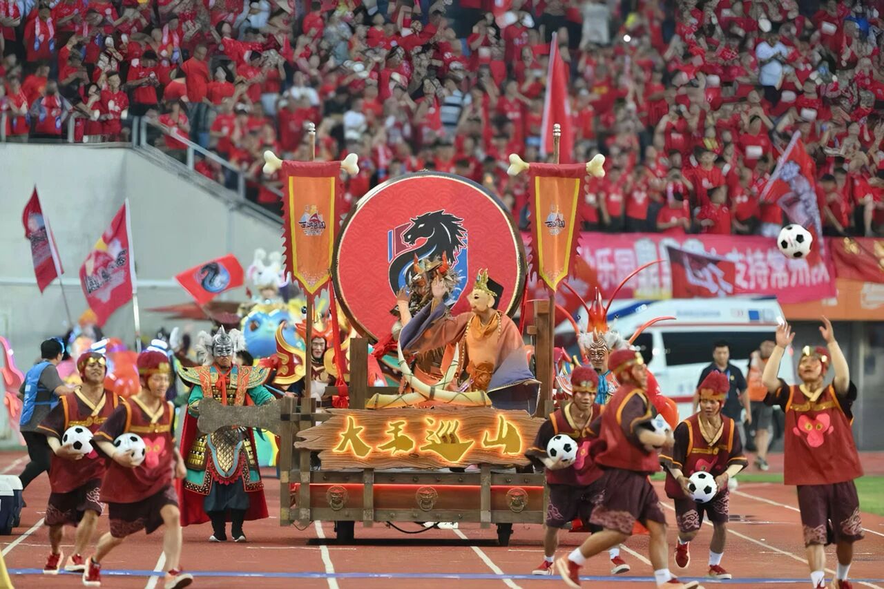 6月14日下午,“西游天团”在淮安主场亮相,一炮而红。一直到9月27日,淮安主场的5次比赛他们都是表演环节“最靓的崽”。赛季高温,汗水洇湿了演员们厚厚的表演服,城市荣誉感带来的骄傲却在众人心中悄然升腾。