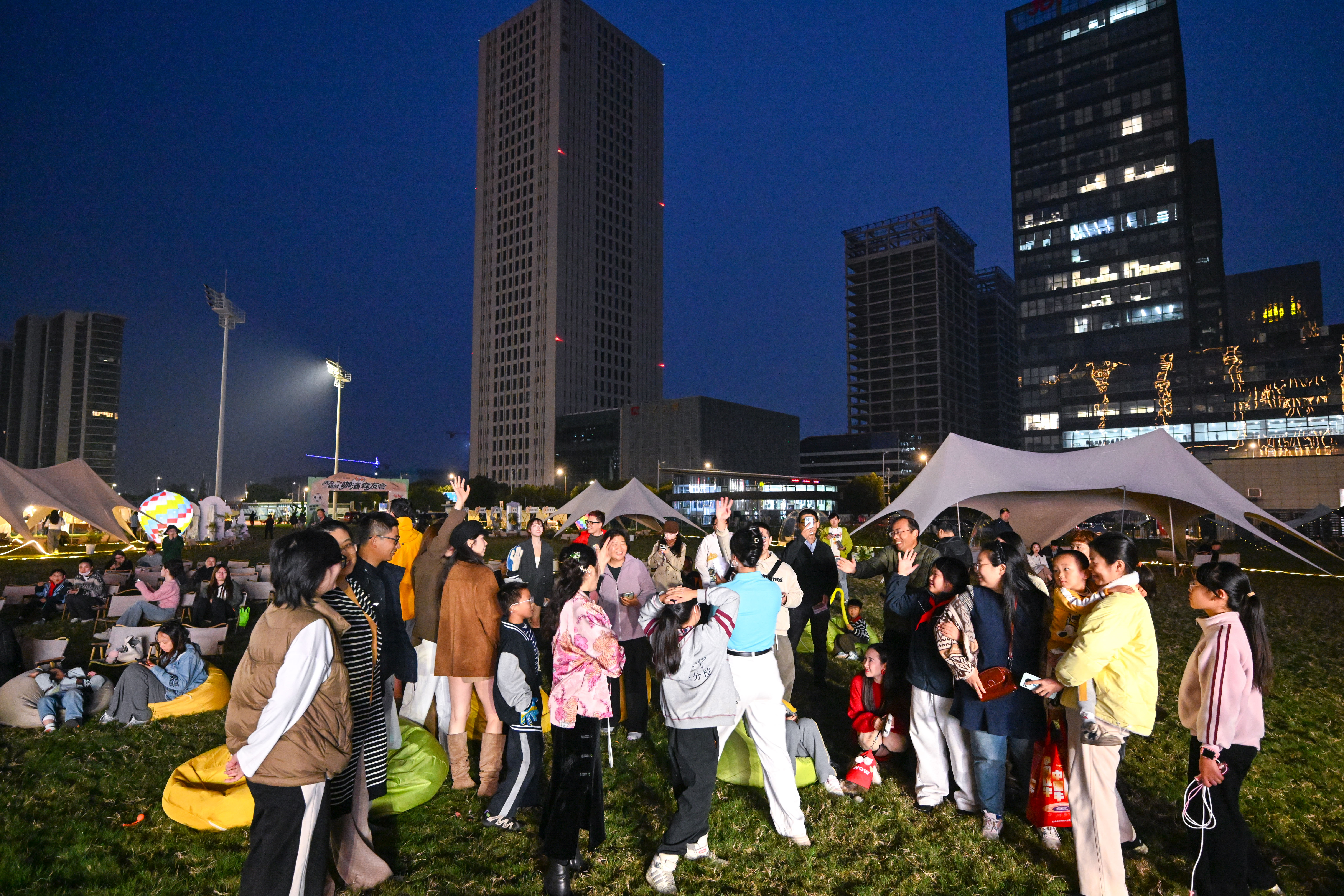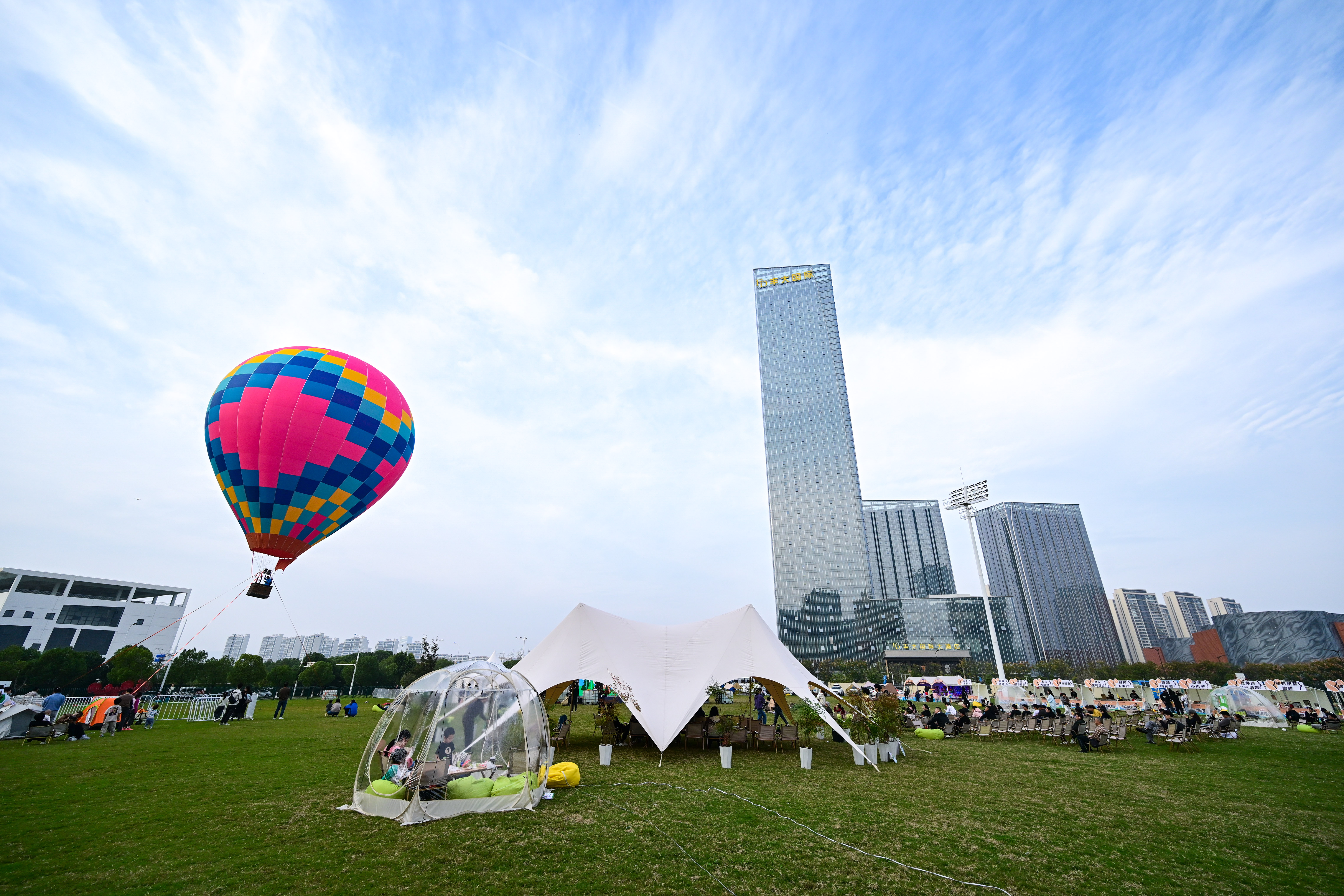 本次活动内容丰富多彩,11月1日晚,苏超总决赛的户外大屏直播点燃了全场激情,众多球迷与市民齐聚一堂,在夜空下共同为绿茵场上的对决呐喊助威,场面热烈。与此同时,唯美梦幻的热气球表演成为现场最具人气的打卡点,为秋日天际线增添了一抹动人的色彩。