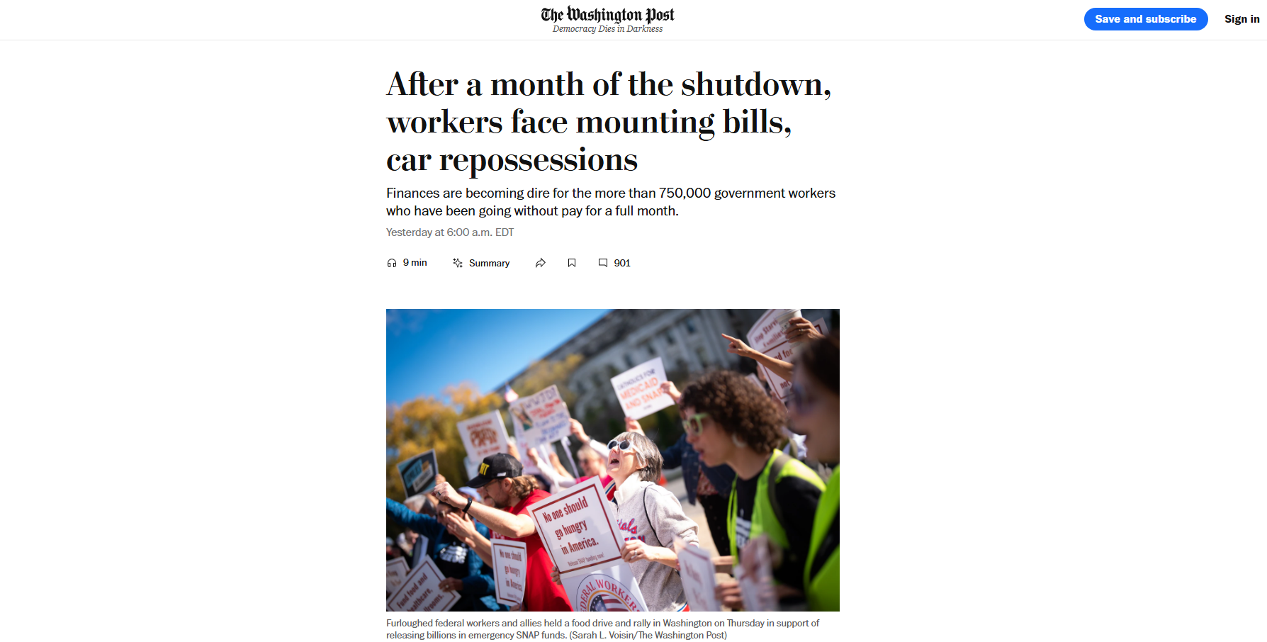 文章说,食品福利已经面临延迟,一些州长和市长已经介入,用他们手头的资金来填补这个养活了大约4200万美国人的项目。