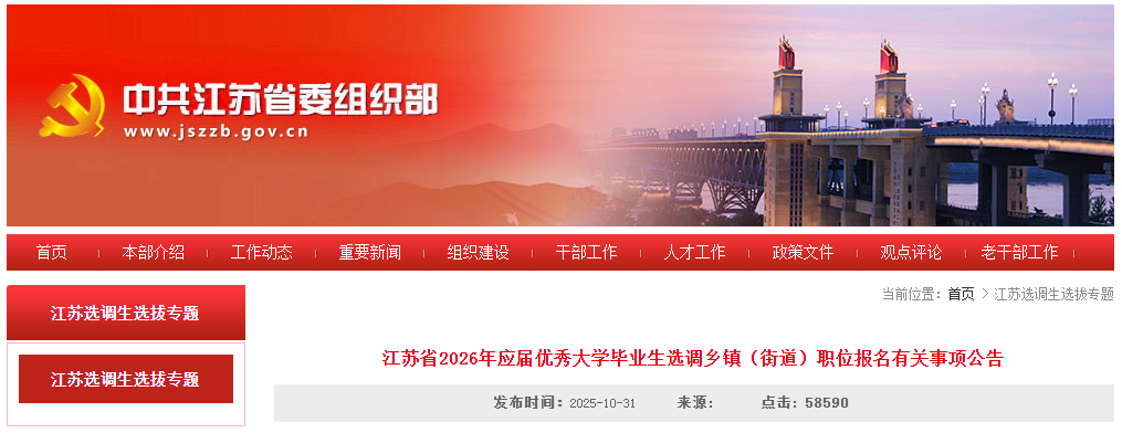 江苏省委组织部网站发布