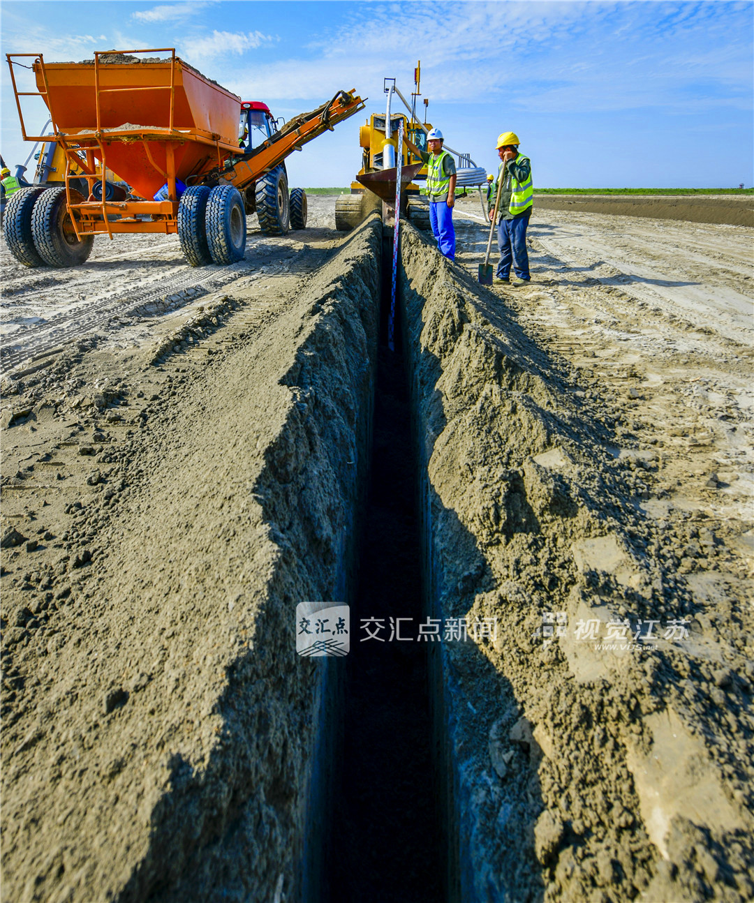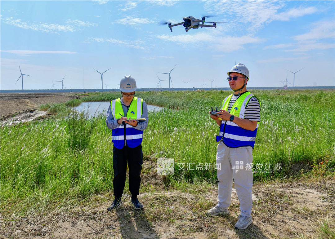 6月5日,记者在现场看到,昔日泛白的盐碱地已被大片绿油油的稻秧覆盖,不时有白鹭从田间飞过。“去年初夏盐碱地改良工程启动时,半数农田里还泛着含盐量超4‰的‘白色盐斑’。”江苏省沿海集团东台公司种植管理部主管周龙祥感慨地说。而在一块尚未完成最终改造的地块上,淡水随着灌渠缓缓渗透进土壤,而经过过滤的水流最终顺着涵管排出时,上面一层被析出的盐碱肉眼可见。正是这样纵横交错的管网与灌排沟渠相连,构建起“灌水洗盐—明沟排盐—暗管降渍—循环净化”的立体盐碱治理网络,让盐碱地得以“新生”。